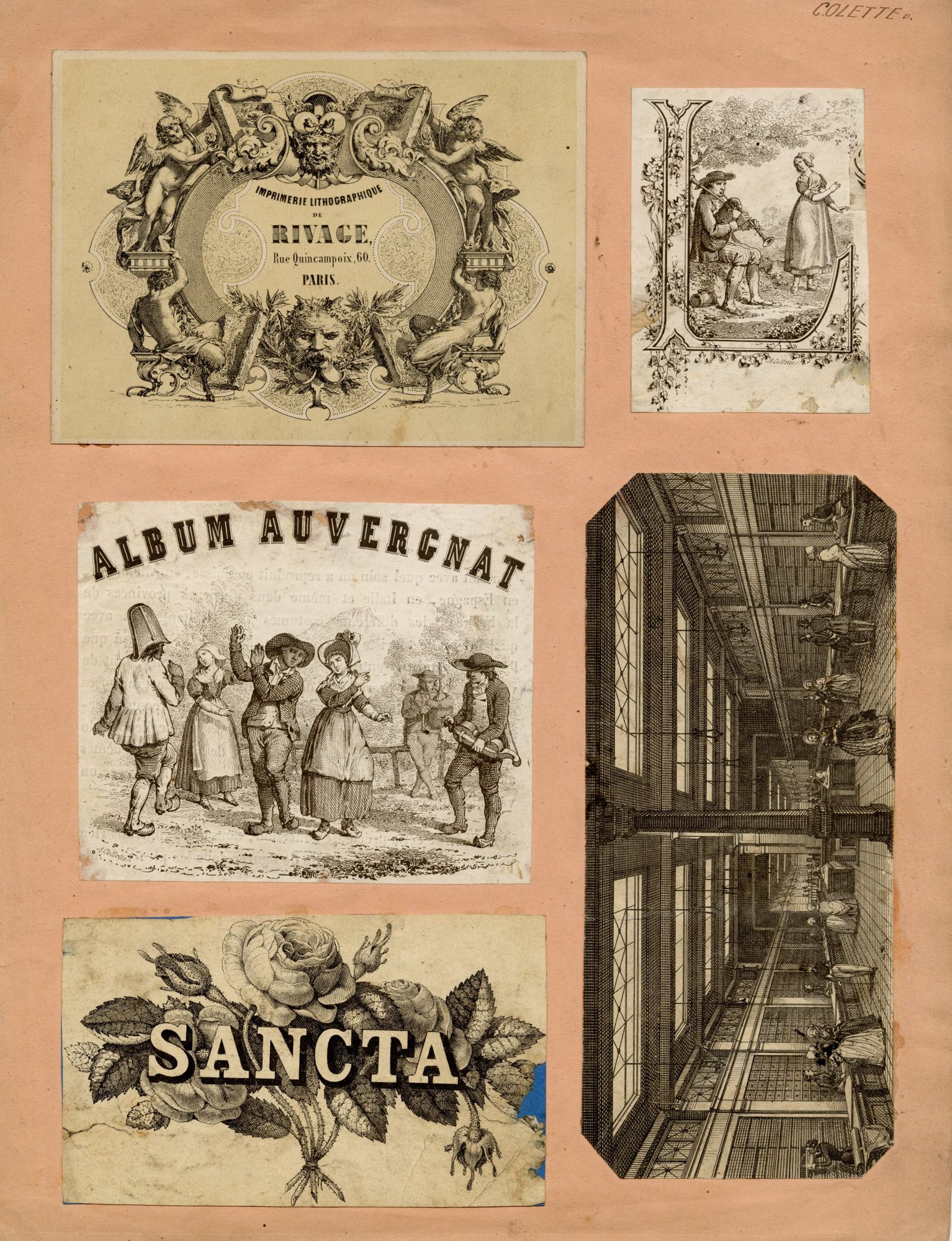 28 J 1/1-560 ; 28 J 2/1-450 ; 28 J 3/1-26 - Fonds Alphonse Aymar - 1282-1927 Documents figurés (formats inférieurs à 24 x 30 cm) Documents figurés classés géographiquement Auvergne 28 J 2/204 - Cinq gravures, dont une signée A. Collette, collées sur une même feuille. A remarquer : Bourrée auvergnate (9 x 11 cm) et personnages élégants dans une galerie, probablement à Paris (8 x 18 cm). - [vers 1845] 28 J 2/204, Cinq gravures, dont une signée A. Collette, collées sur une même feuille. A remarquer : Bourrée auvergnate (9 x 11 cm) et personnages élégants dans une galerie, probablement à Paris (8 x 18 cm). Cote 28 J 2/204 Date [vers 1845] Mots-clés lieu Auvergne (France ; région) Mots-clés matière Bourrée Peintre Graveur Lithographe Costume Mots-clés personne Collette, A. Aymar, Alphonse (1865-1927) Permalien de la notice https://archives.cantal.fr:443/ark:16075/a011489666464ZtDGeQ.moteur=arko_default_5fbd06a9ae86c