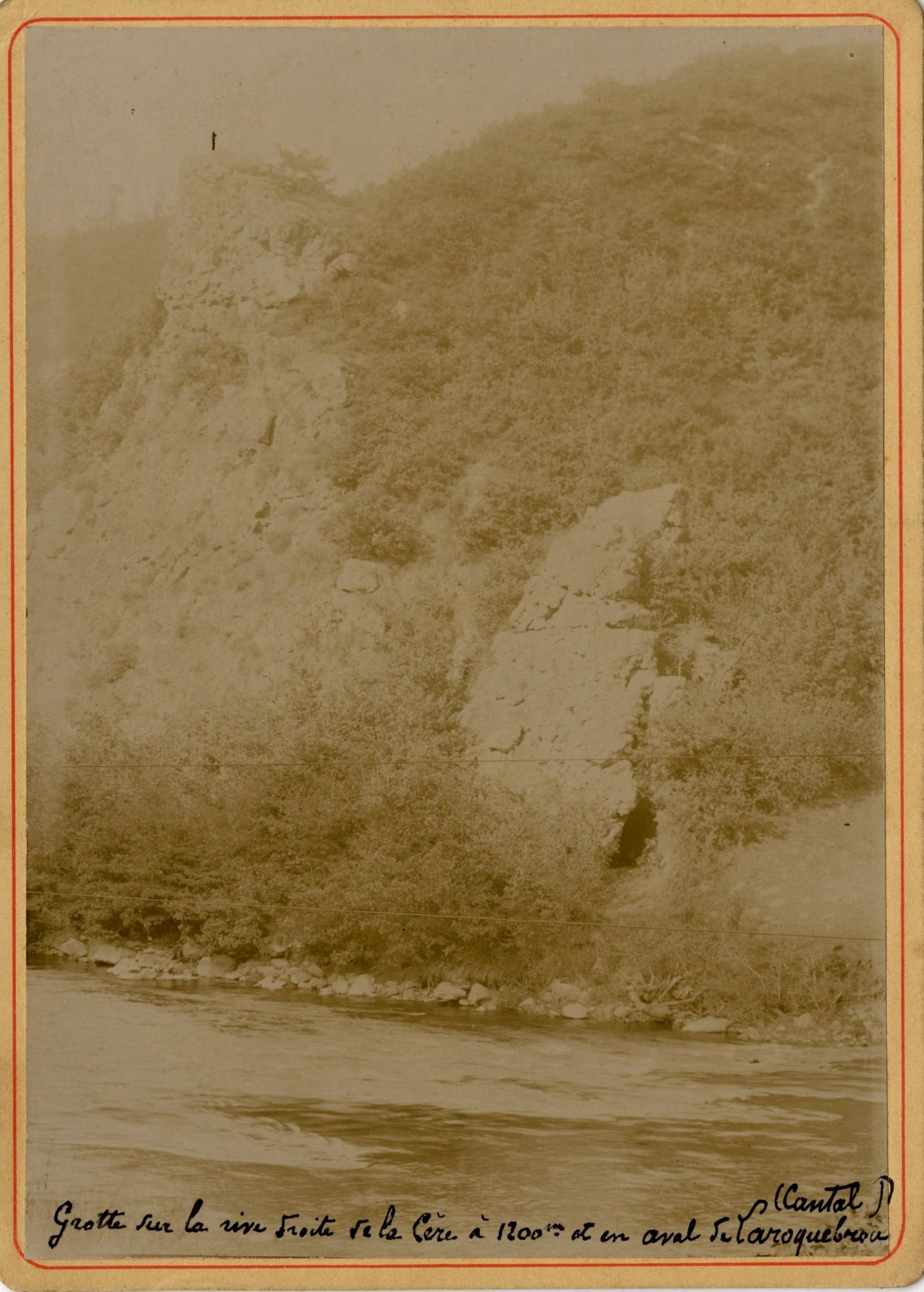 "Grotte sur la rive droite de la Cère à 1200 m et en aval de Laroquebrou". - Photographie ancienne, 18 x 13 cm.