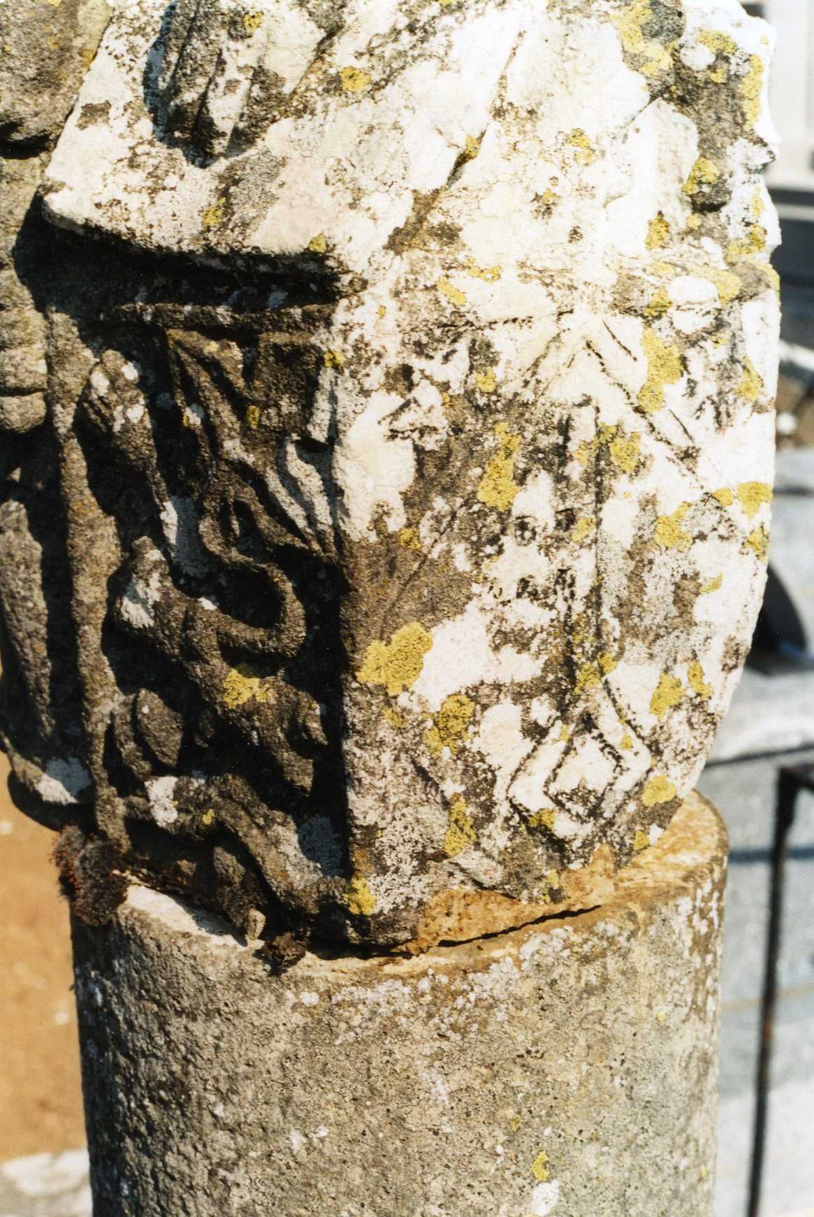 45 Fi 15200, Détail d'une sculpture au cimetière : clef. - Cliché Hennequin. - Couleur.