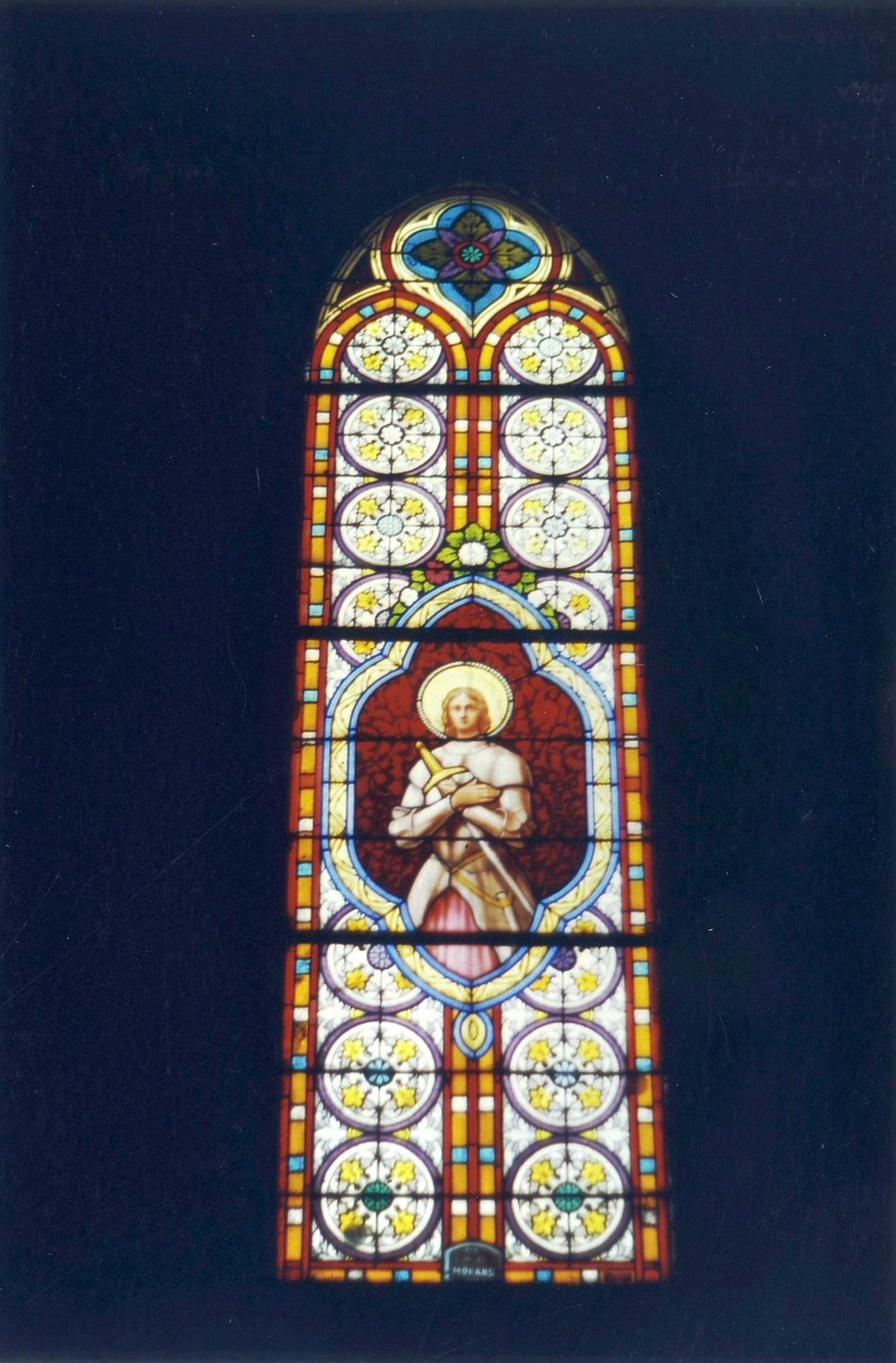 23 NUM 961, Vitrail du choeur : sainte Jeanne d'Arc. - Cliché anonyme. - Photographie, couleur, 15 x 10 cm