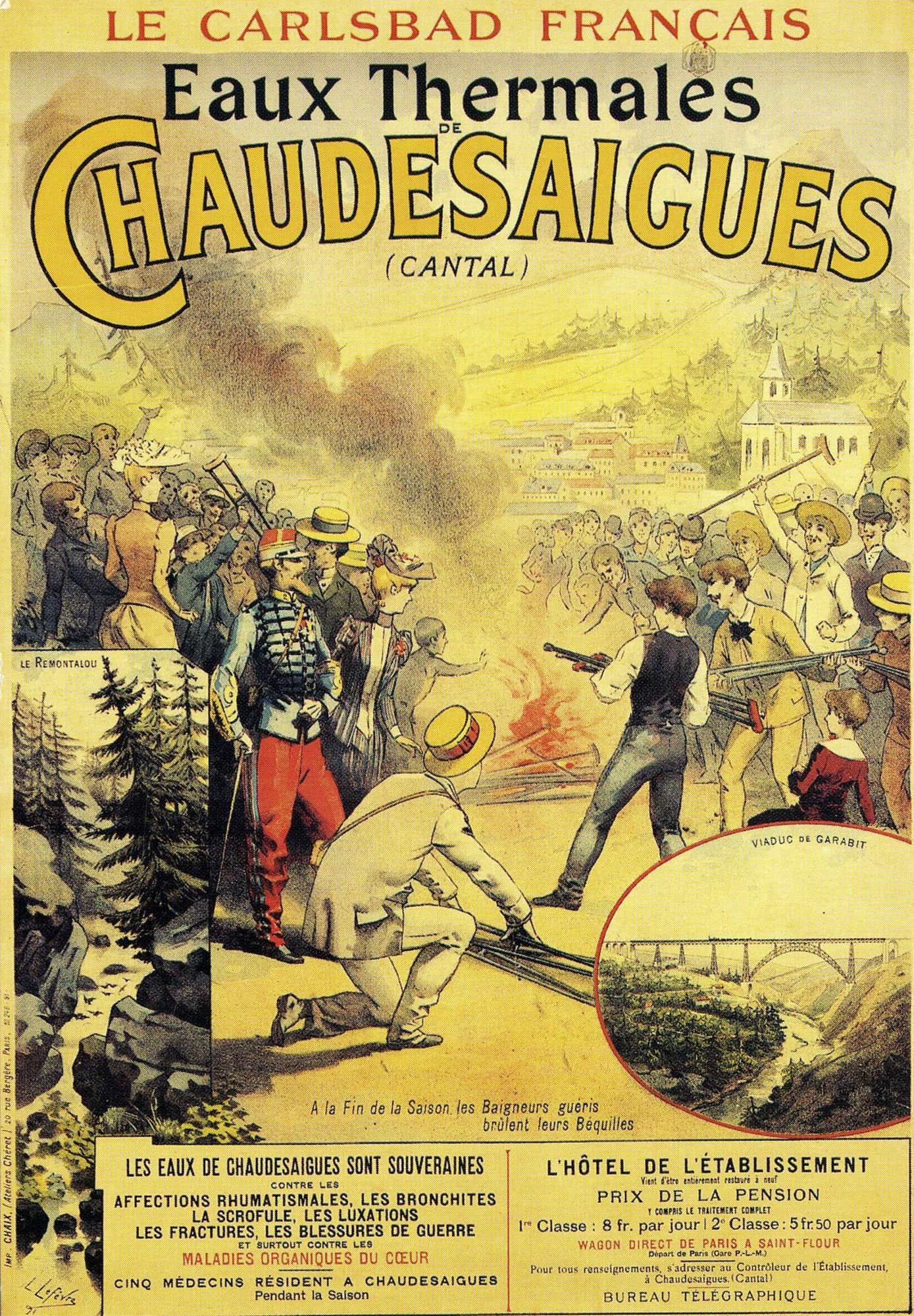 22 NUM 1-570 ; 23 NUM 14-1734 - Séries iconographiques des archives municipales de Saint-Flour - XIXe-[2011] Environs de Saint-Flour et Cantal Chaudes-Aigues 22 NUM 436 - "Affiche -Eaux Thermales de Chaudesaigues (Cantal) de L. Lefevre. Impr. Chaix - Paris". - Edition Musée Postal d'Auvergne, Photo Studio Gibert, Impr. Piver, Saint-Flour. - Carte postale, couleur, 15 x 10 cm - [1900-1930] 22 NUM 436, "Affiche -Eaux Thermales de Chaudesaigues (Cantal) de L. Lefevre. Impr. Chaix - Paris". - Edition Musée Postal d'Auvergne, Photo Studio Gibert, Impr. Piver, Saint-Flour. - Carte postale, couleur, 15 x 10 cm Cote 22 NUM 436 Date [1900-1930] Mots-clés lieu Chaudes-Aigues (Cantal, France) Mots-clés matière Thermalisme Tourisme Mots-clés personne Lefèvre (dessinateur)