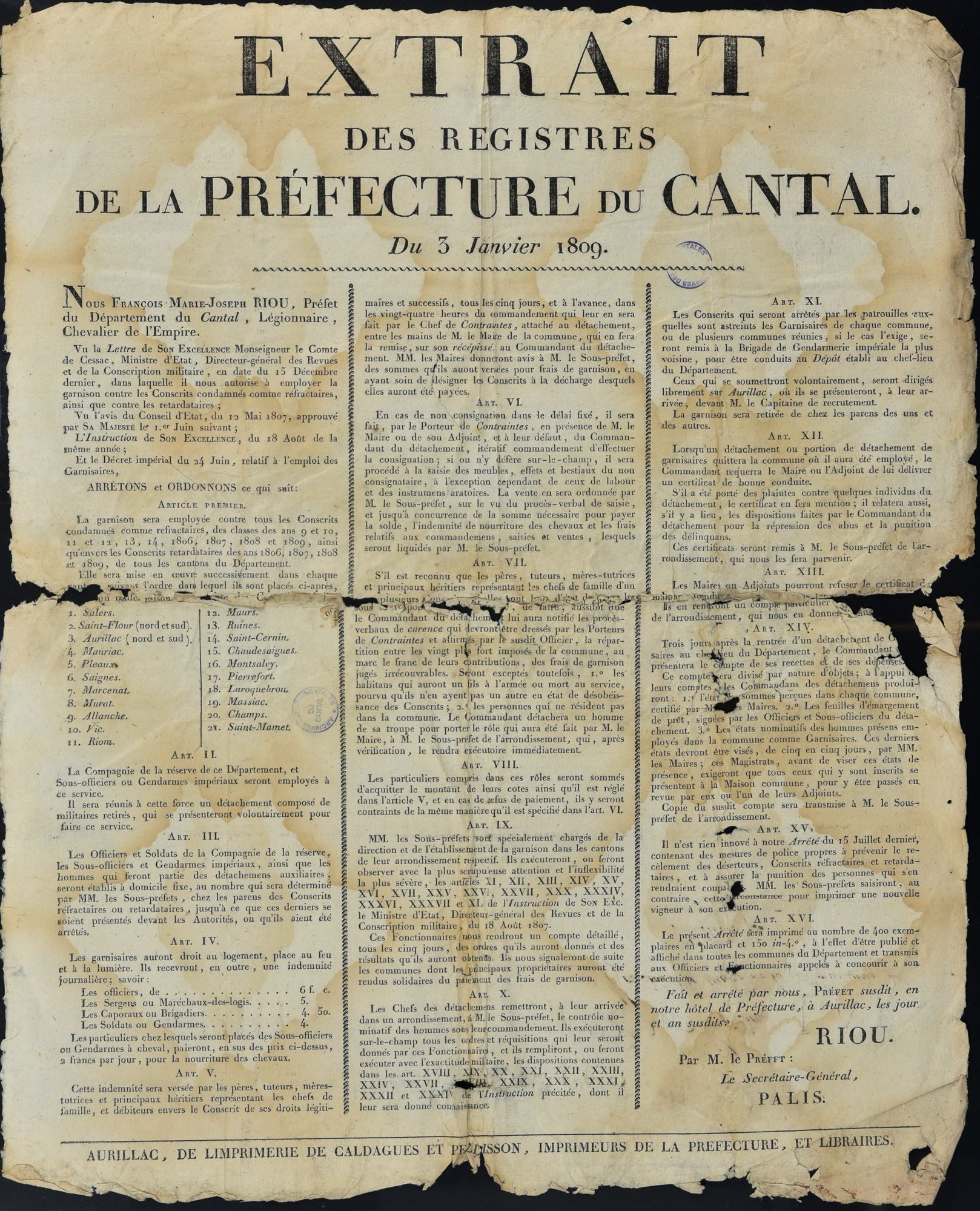 Aurillac, de l'imprimerie de Caldagues et Pelisson, imprimeurs de la préfecture