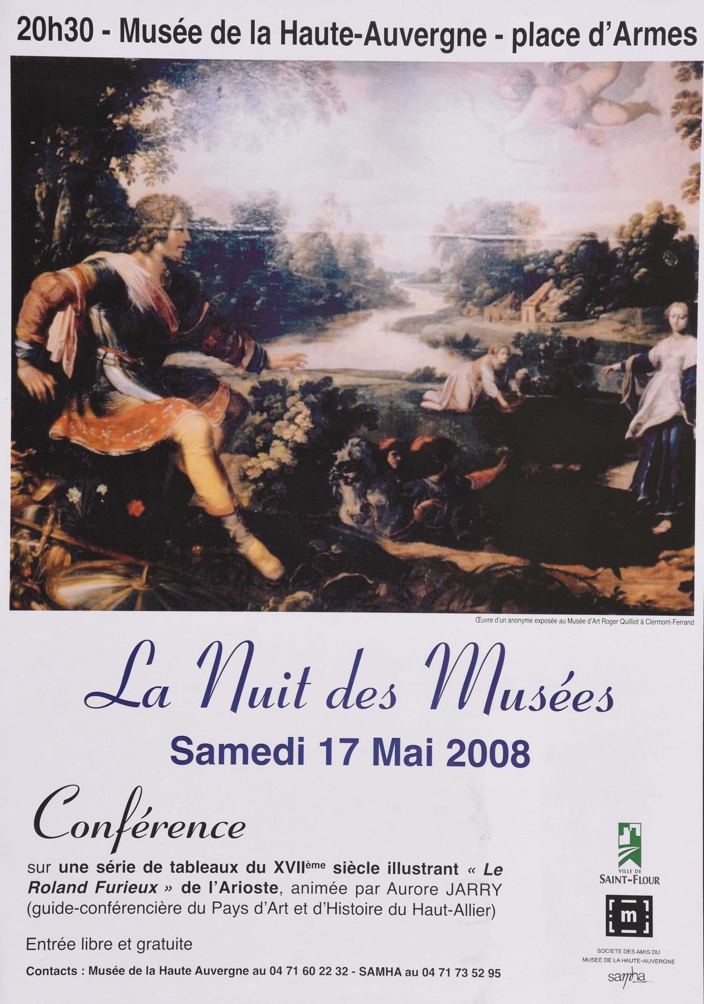 61 NUM 1481, La Nuit des Musées. Conférence sur une série de tableaux du XVIIe siècle illustrant "Le Roland Furieux" de L'Arioste animée par Aurore Jarry, guide-conférencière du Pays d'Art et d'Histoire du Haut-Allier. Saint-Flour, Musée de la Haute-Auvergne, 17 mai 2008.
