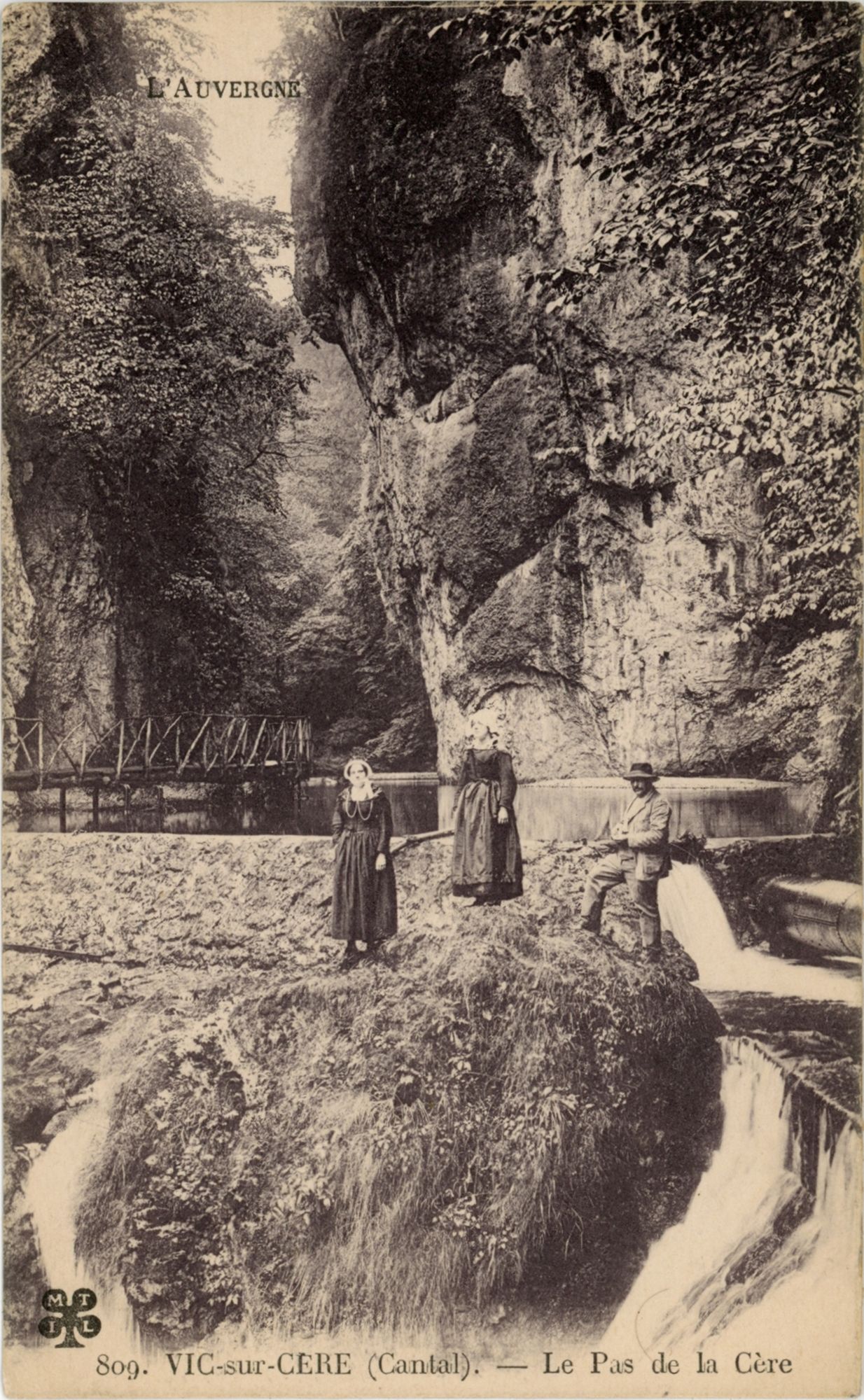 Cette vue, tournée vers l'aval de la rivière, montre le premier seuil qui alimentait « l'usine électrique », selon la dénomination de l'époque.