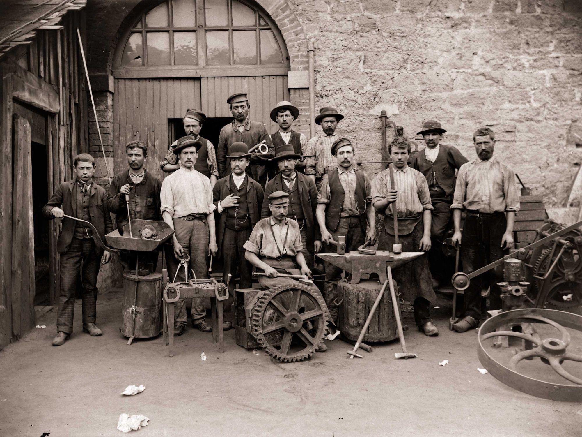 67 NUM 1280, Carreau de la mine de l'Hôpital-Ydes : cadres et personnel de la forge. - Cliché Pochat.