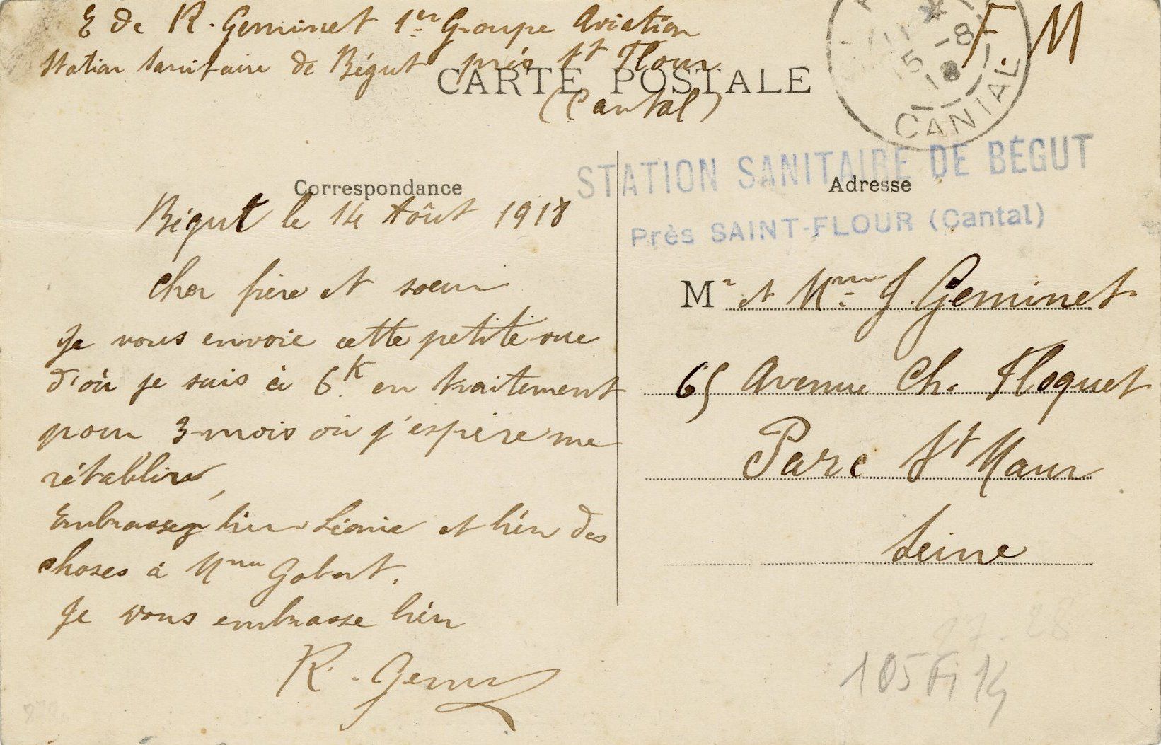 105 Fi 14, Carte postale portant la marque "STATION SANITAIRE DE BEGUT, près SAINT-FLOUR (Cantal)" ; au recto : "Cantal - 695. L'arrivée à Saint-Flour par la route de Massiac". - Editions Maurice Tesson, Limoges.105 Fi 14, Carte postale portant la marque "STATION SANITAIRE DE BEGUT, près SAINT-FLOUR (Cantal)" ; au recto : "Cantal - 695. L'arrivée à Saint-Flour par la route de Massiac". - Editions Maurice Tesson, Limoges.