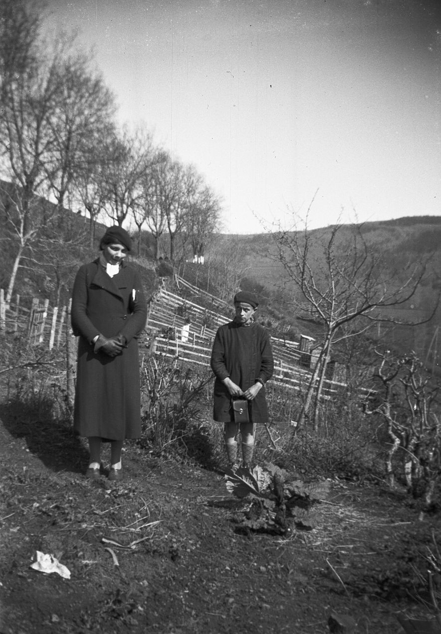 110 Fi 38, Jeune femme accompagnée d'un jeune garçon prenant la pose dans un potager.