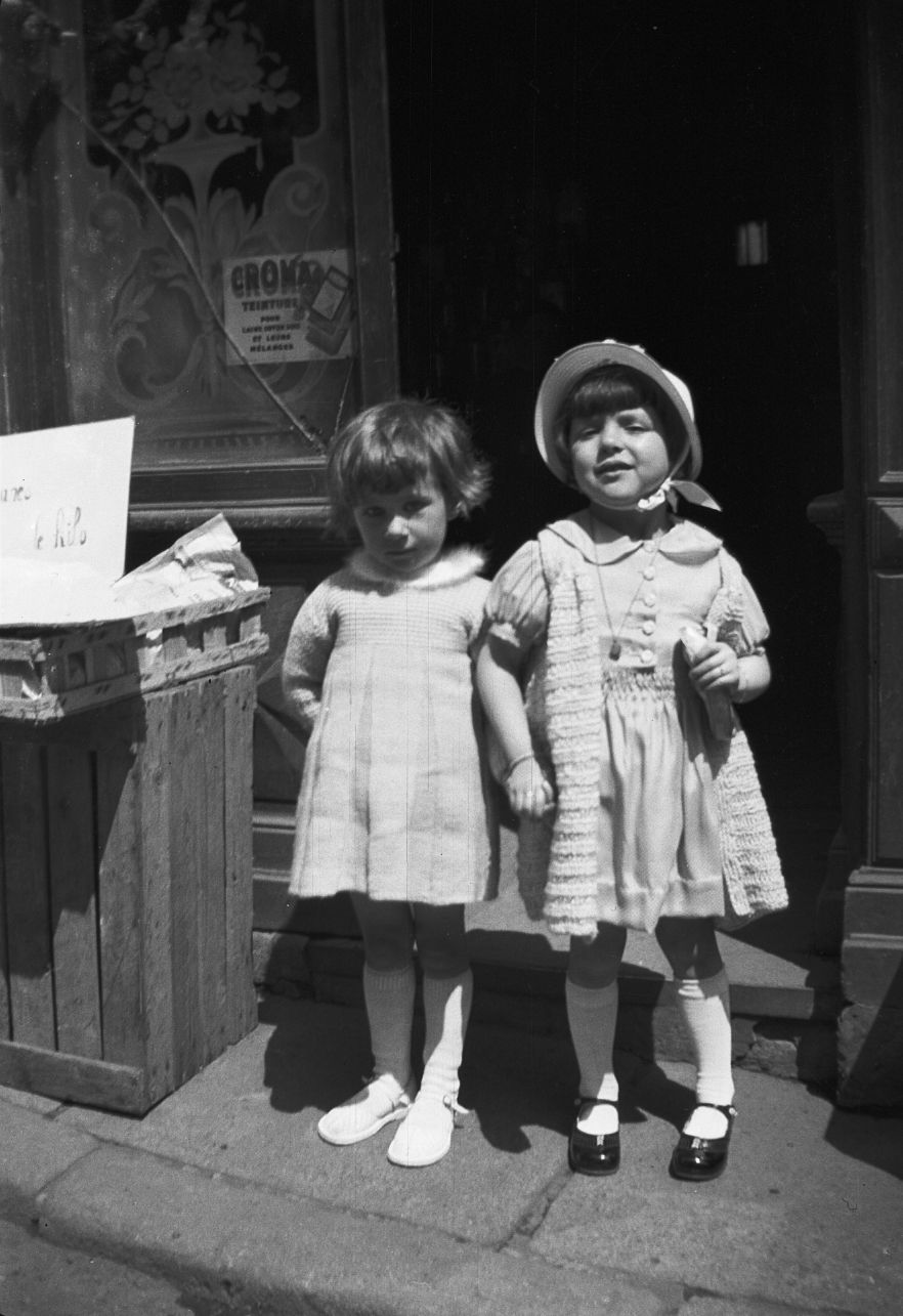 110 Fi 42, Petites filles prenant la pose à l'entrée d'un magasin.