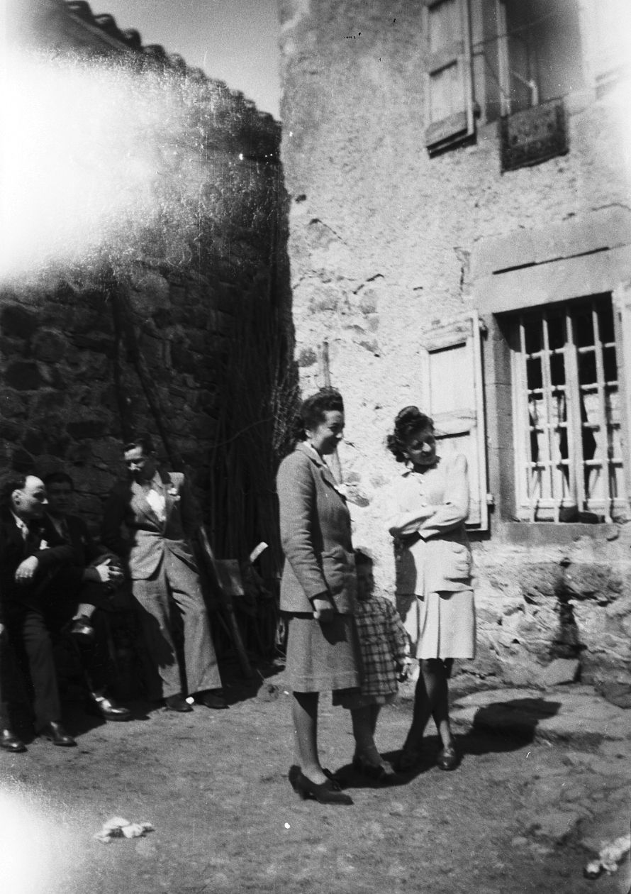 110 Fi 172, Groupe de personnes dans la cour d'une maison.