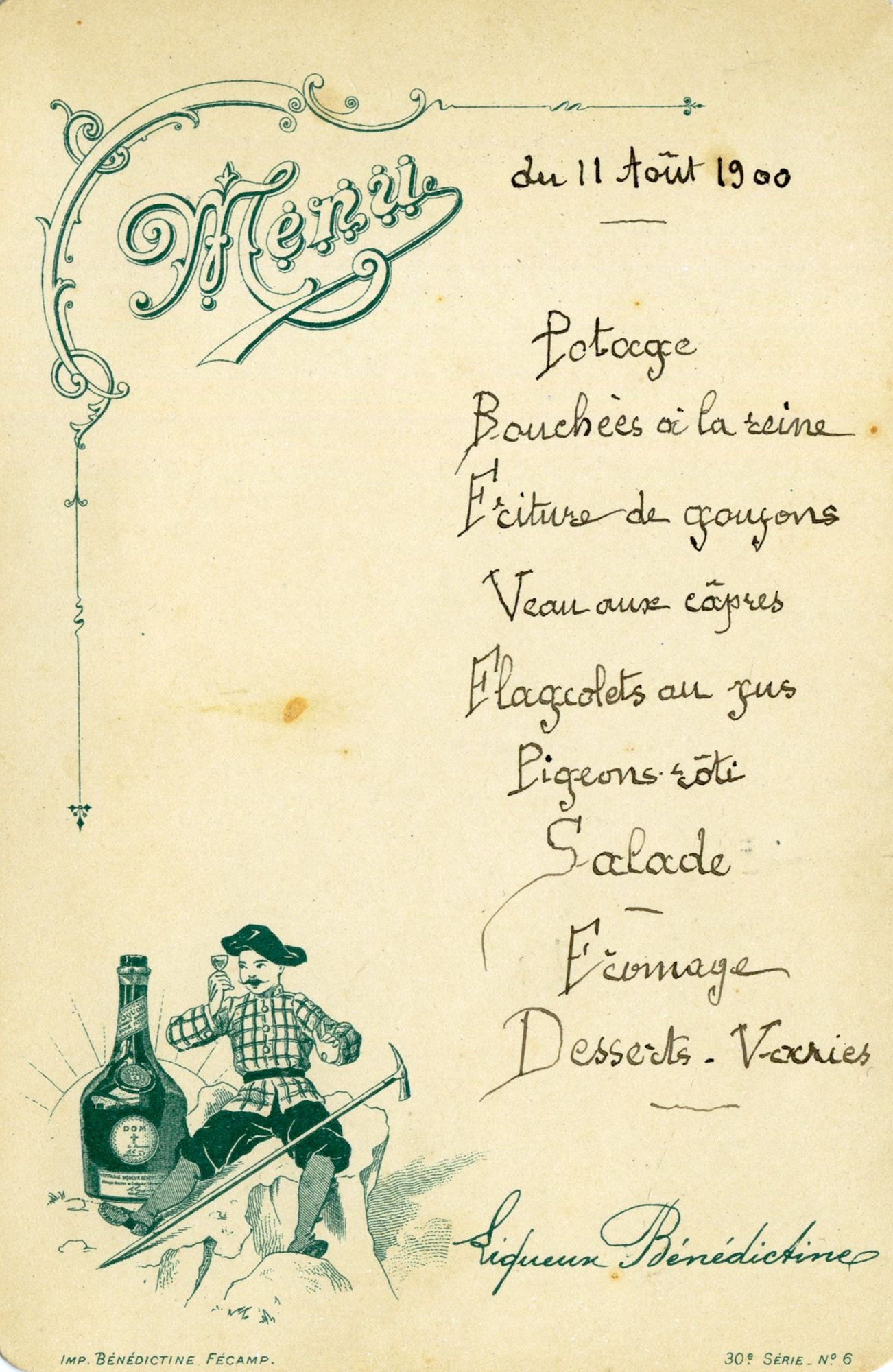 81 NUM 64, Menu servi à l'hôtel Daude le 11 août 1900.