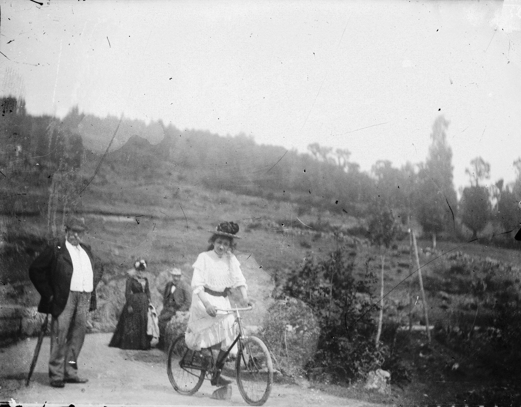 111 Fi 183, Groupe de personne dont une jeune fille à bicyclette sur une route.