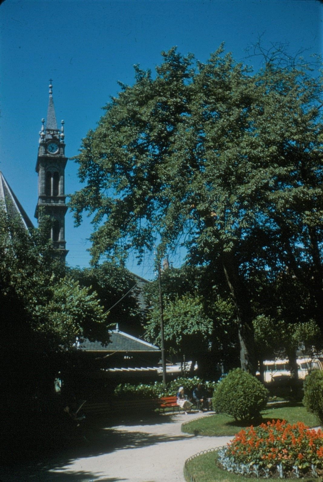 84 NUM 5, Aurillac : clocher de Notre-Dame-aux-Neiges vu depuis le square Arsène Vermenouze.