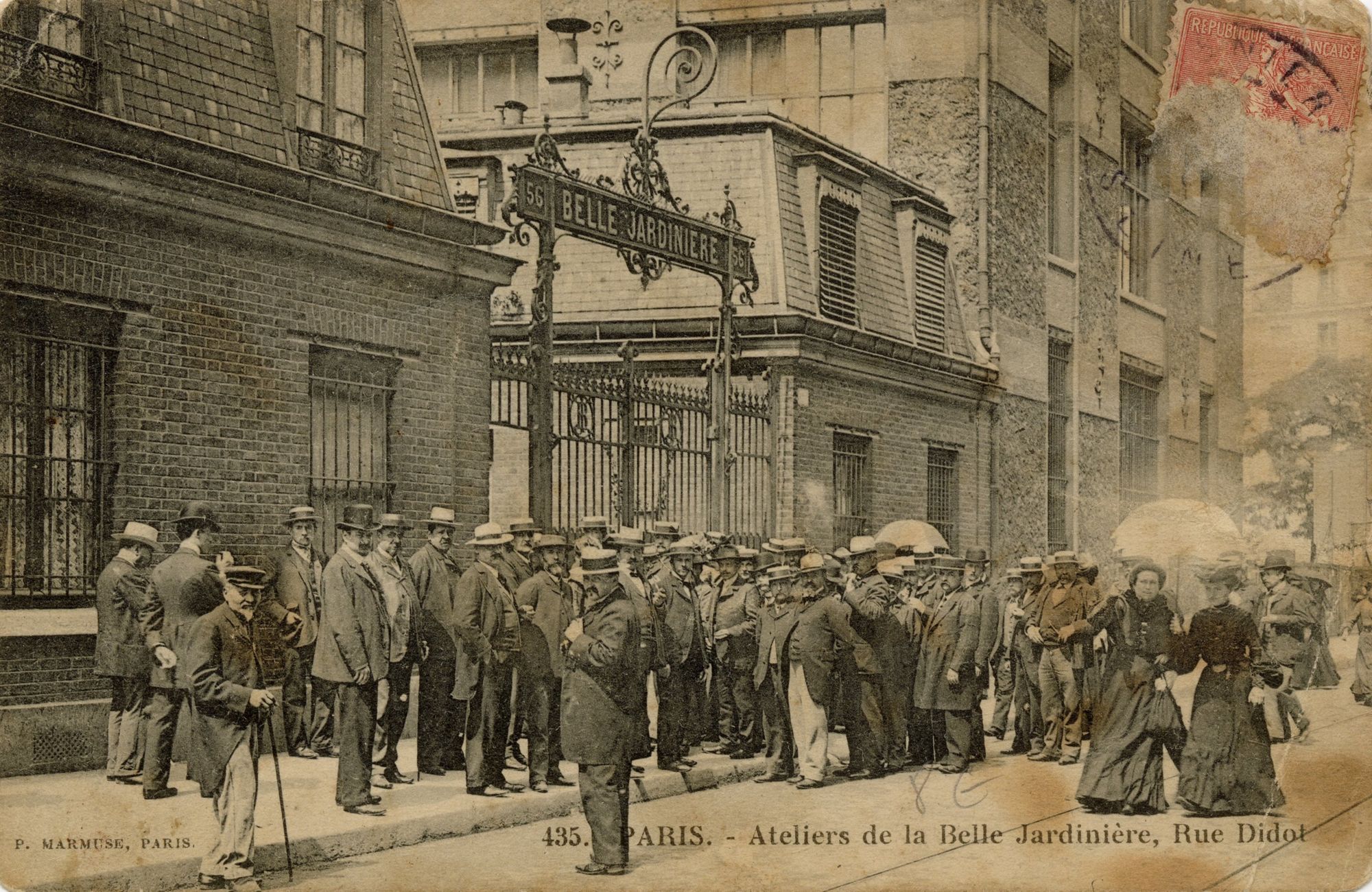 117 Fi 1-2604 ; 117 J 1-13 - Fonds Chappe-Gauthier - XVIIIe siècle-2022 Cartes postales 117 Fi 1403 - "435. Paris. - Ateliers de la Belle Jardinière, rue Didot". - Editions P. Marmuse, Paris. - [1904-1910] 117 Fi 1403, "435. Paris. - Ateliers de la Belle Jardinière, rue Didot". - Editions P. Marmuse, Paris. Cote 117 Fi 1403 Date [1904-1910] Mots-clés lieu Paris (France) -- Rue Didot Mots-clés matière À la Belle Jardinière (grand magasin) Permalien de la notice https://archives.cantal.fr:443/ark:16075/1ef5f03f9e5f6ed2a4ee0050568bfe75.moteur=arko_default_5fbd06a9ae86c