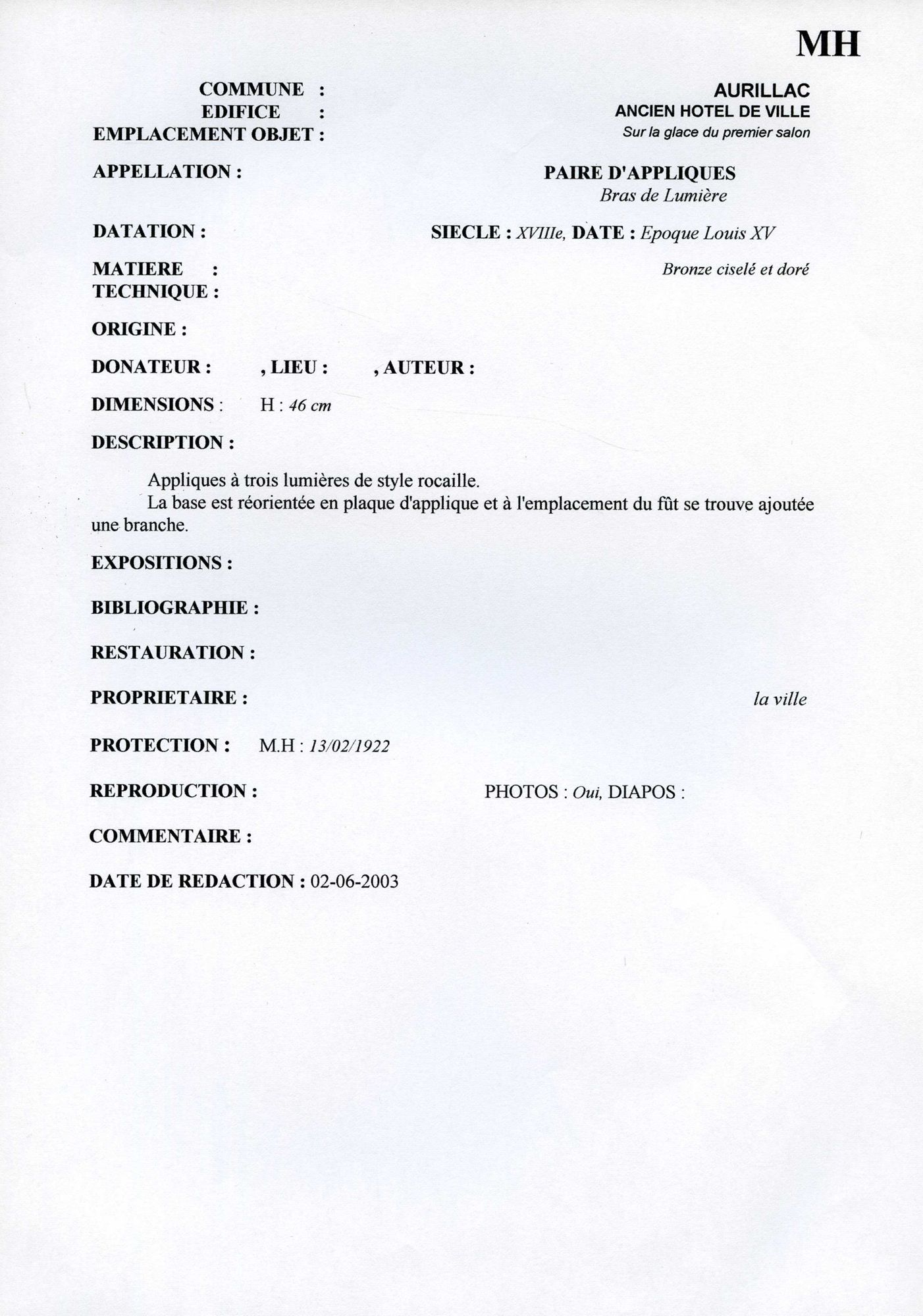 Paire d'appliques à trois branches, bronze doré et ciselé, époque Louis XV