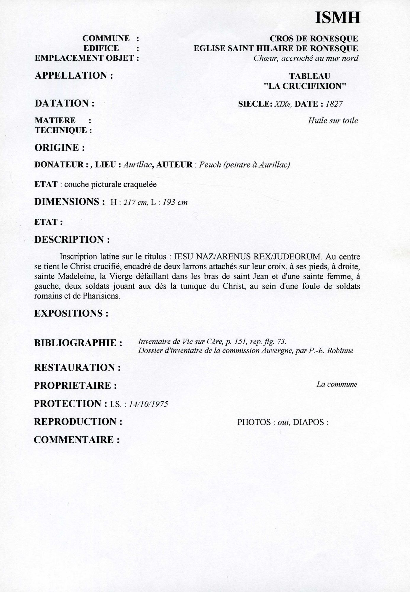 "La Crucifixion", toile signée "Peuch", peinte à Aurillac