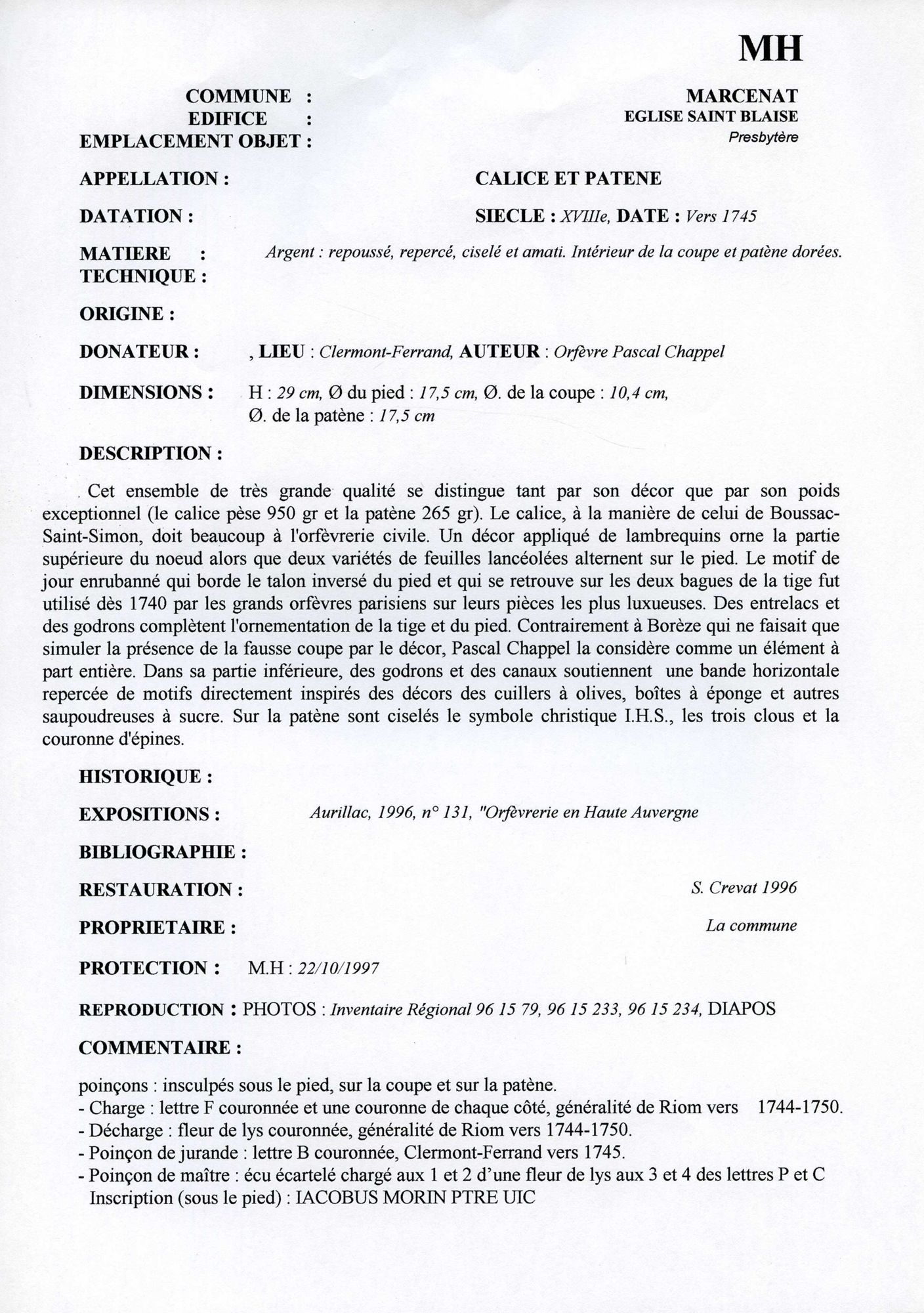 Calice et patène, argent, intérieur de la coupe et patène dorés, orfèvre Pascal Chappel à Clermont-Ferrand