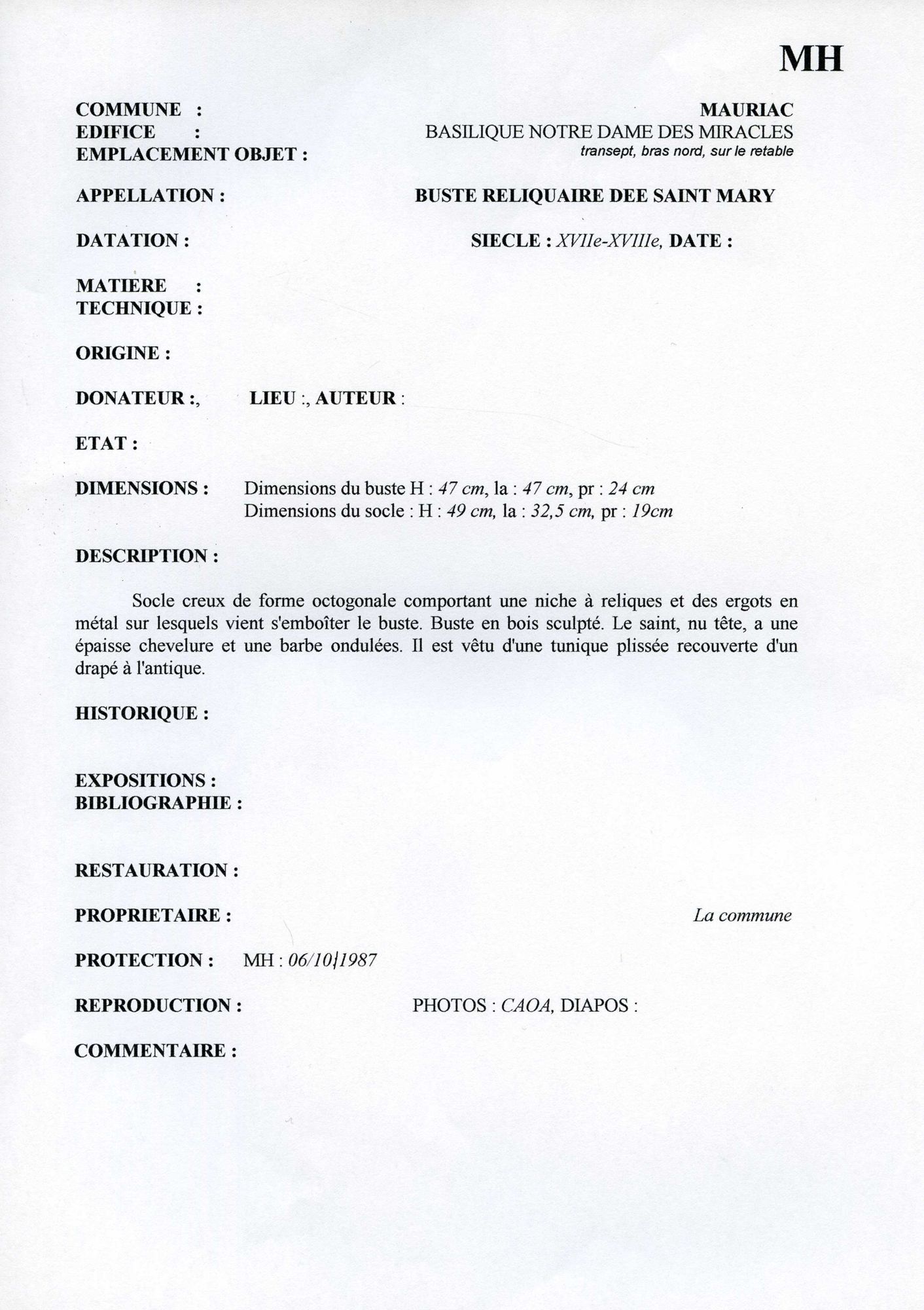 Buste-reliquaire de saint Mary, bois sculpté et doré
