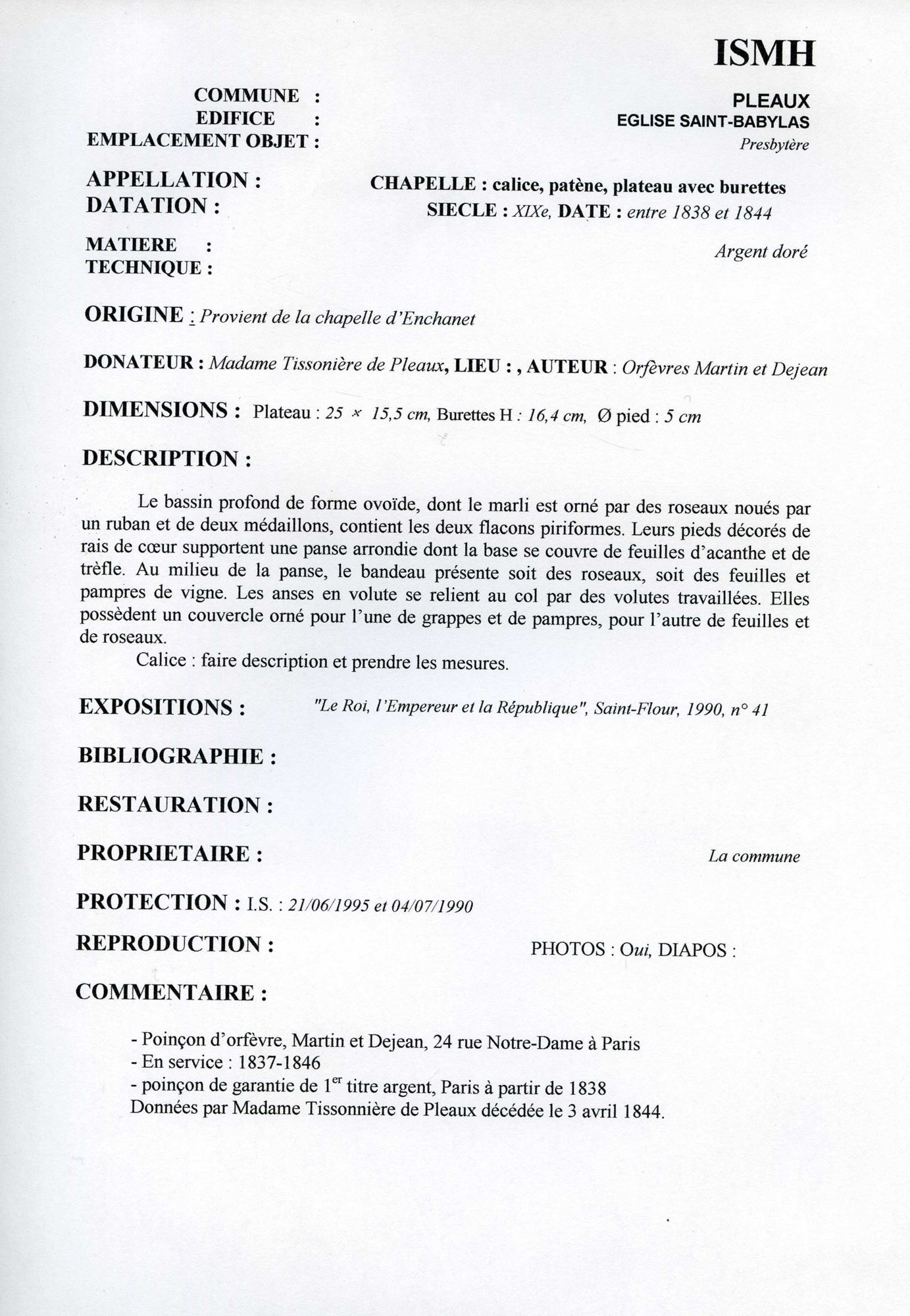 Chapelle comprenant : plateau avec burettes, calice et patène, argent doré par Martin et Dejean