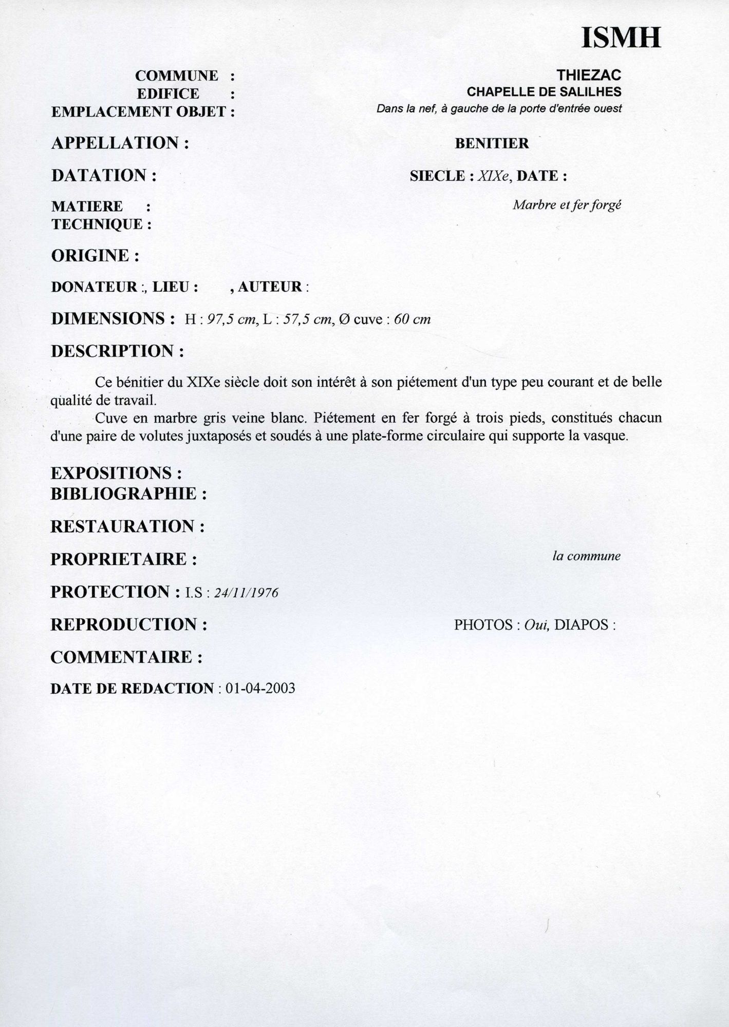 Bénitier, marbre et fer forgé