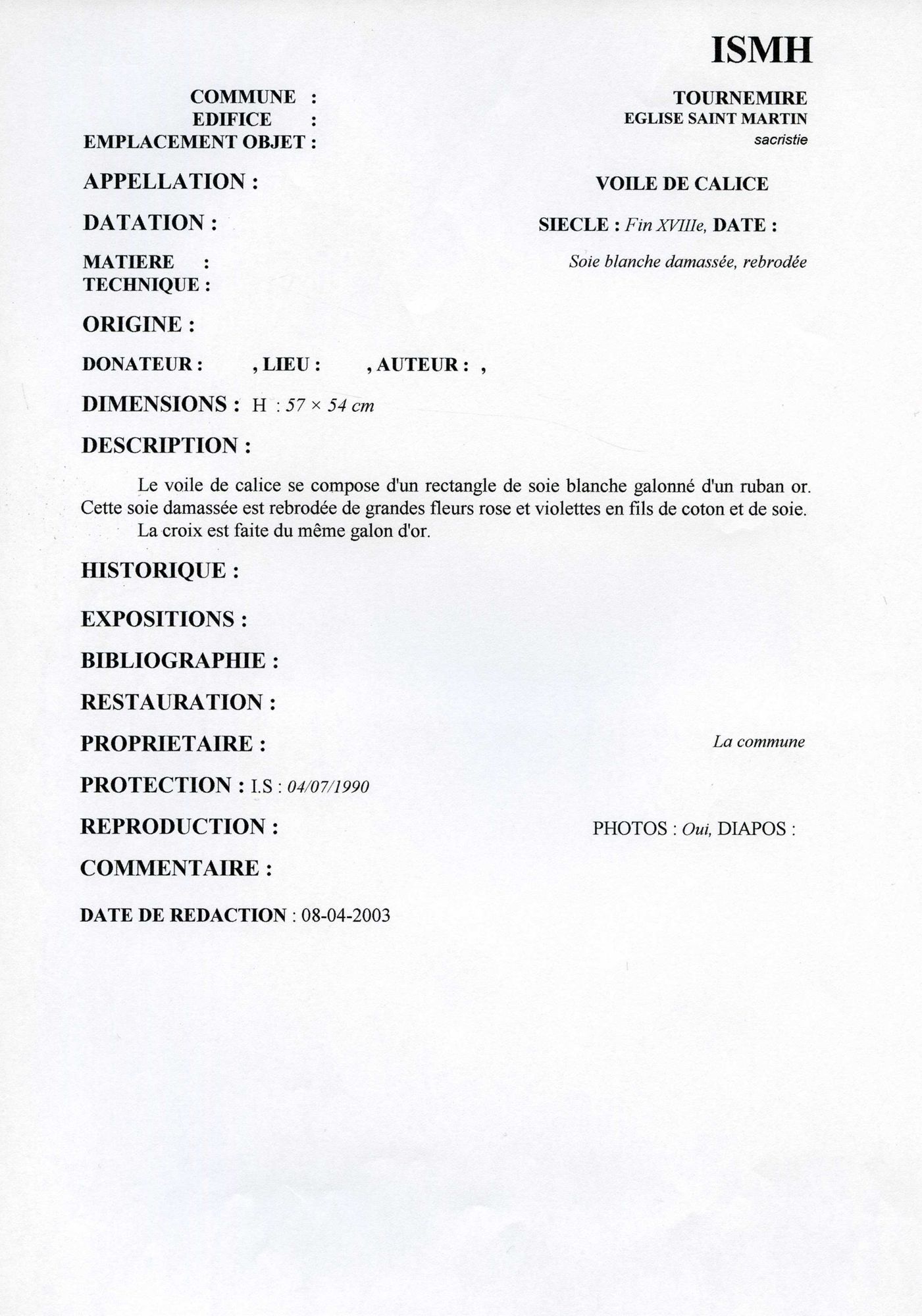 Voile de calice (soie damassée, galon, fleurs rebrodées)