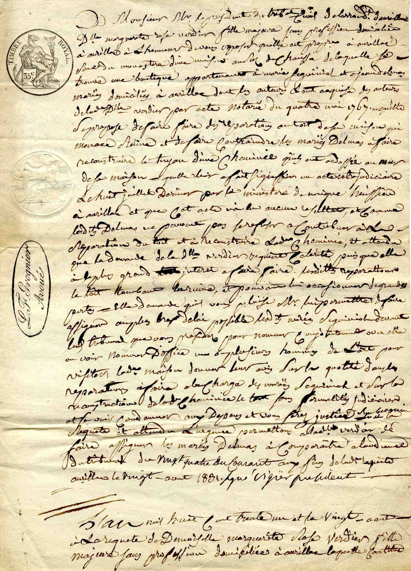 42 NUM 1-15 - Collection Géraud Cazard - 1545-[1840] Famille Carrier 42 NUM 10 - Procédure entre Marguerite Rose Verdier, d'une part, Marie Seguiniol et Jean Delmas mariés, à propos d'un tuyau de cheminée de la maison rue du Monastère dont les parties ont chacune une partie - 1831 Cote 42 NUM 10 Date 1831 Mots-clés lieu Aurillac (Cantal, France) -- Rue du Monastère Mots-clés matière Cheminée Procès Mots-clés personne Verdier, Marguerite Rose Seguiniol, Marie Delmas, Jean Carrier (famille) Permalien de la notice https://archives.cantal.fr:443/ark:16075/a011382510841f7A5ds.moteur=arko_default_5fe0d0b5a0d5e