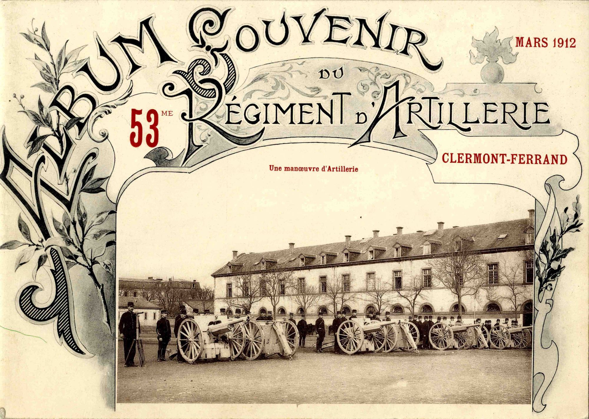 Grande Collecte Général Jean BRUNON, spécialiste du renseignement militaire et gouverneur militaire de Verdun Photographies Album souvenir : régiment d'artillerie de Clermont-Ferrand, mars 1912. Le général de brigade et les officiers du régiment, le capitaine Brunon est au deuxième rang, troisième à partir de la droite. 5e batterie : le capitaine Brunon, commandant la batterie, est au premier rang au centre. Imprimerie phototypique A. Gelly, Charleville. Cote 43 NUM 1/9 Date 1912 Permalien de la notice https://archives.cantal.fr:443/ark:16075/a011372320914YYAhG4.moteur=arko_default_5fe0d0b5a0d5e