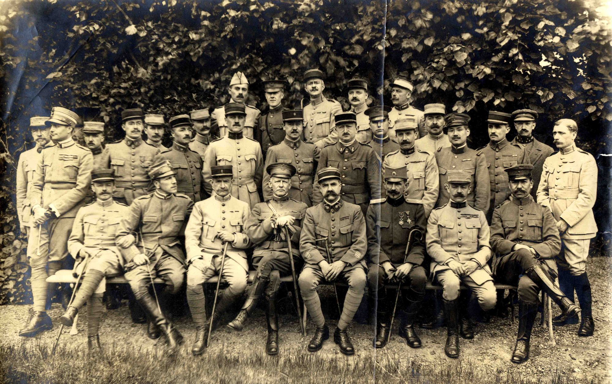 Grande Collecte Général Jean BRUNON, spécialiste du renseignement militaire et gouverneur militaire de Verdun Photographies Deuxième bureau du grand quartier général de Compiègne. Le commandant Brunon est assis, deuxième à partir de la droite. Le commandant du bureau est le lieutenant-colonel De Cointet, assis, quatrième à partir de la droite. Cote 43 NUM 1/13 Date 1918 Permalien de la notice https://archives.cantal.fr:443/ark:16075/a011372320914I2A90n.moteur=arko_default_5fe0d0b5a0d5e