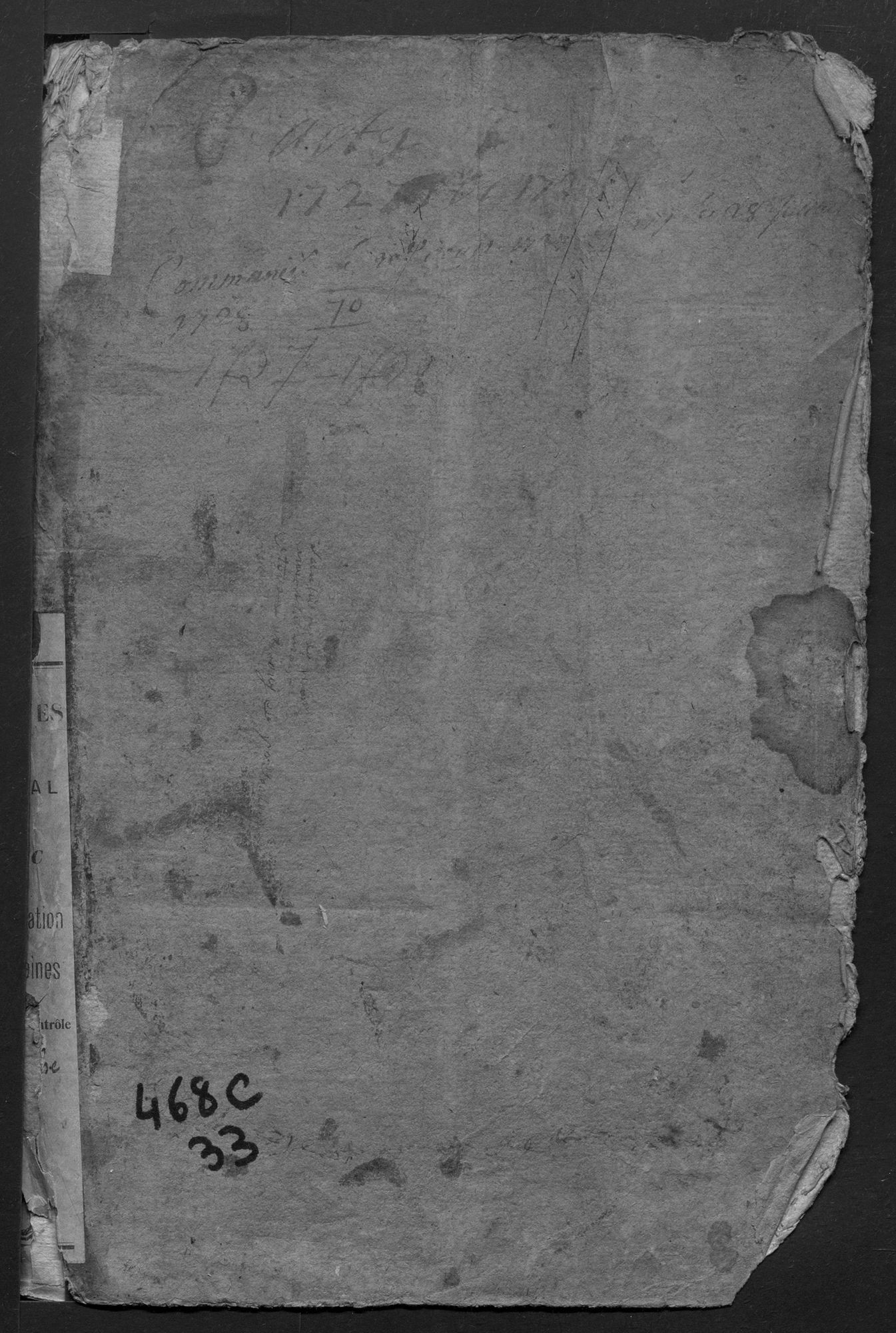 Série C - Contrôle des actes - 1676-1822 Bureau d'Allanche Contrôle des actes de notaires et sous seing privé (1697-1790) 20 août 1727 - 25 oct. 1728 - 1727-1728 Cote 468 C 33 Date 1727-1728 Description physique Registre : Oui Permalien de la notice https://archives.cantal.fr:443/ark:16075/a011354695718LdZhCW.moteur=arko_default_5fe0d0b5a0d5e