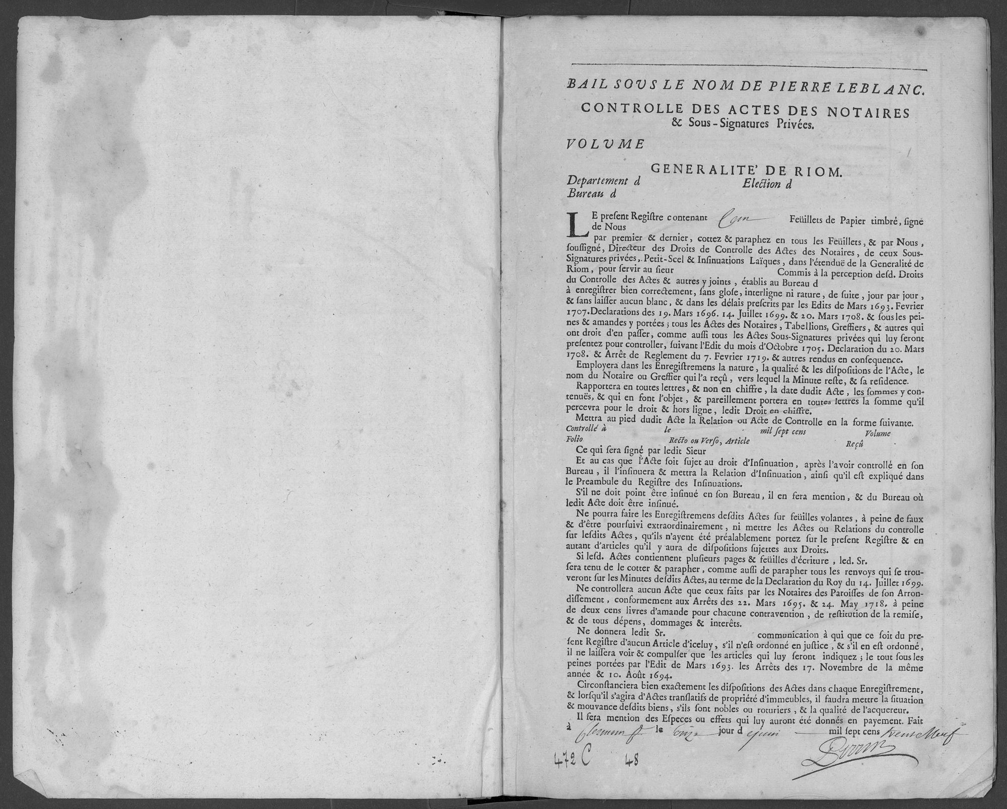 Série C - Contrôle des actes - 1676-1822 Bureau de Chaudes-Aigues Contrôle des actes de notaires et sous seing privé (1697-1789) 12 nov. 1739 - 30 sept. 1740 - 1739-1740 Cote 472 C 48 Date 1739-1740 Description physique Registre : Oui Permalien de la notice https://archives.cantal.fr:443/ark:16075/a011354695718uWhV7n.moteur=arko_default_5fe0d0b5a0d5e