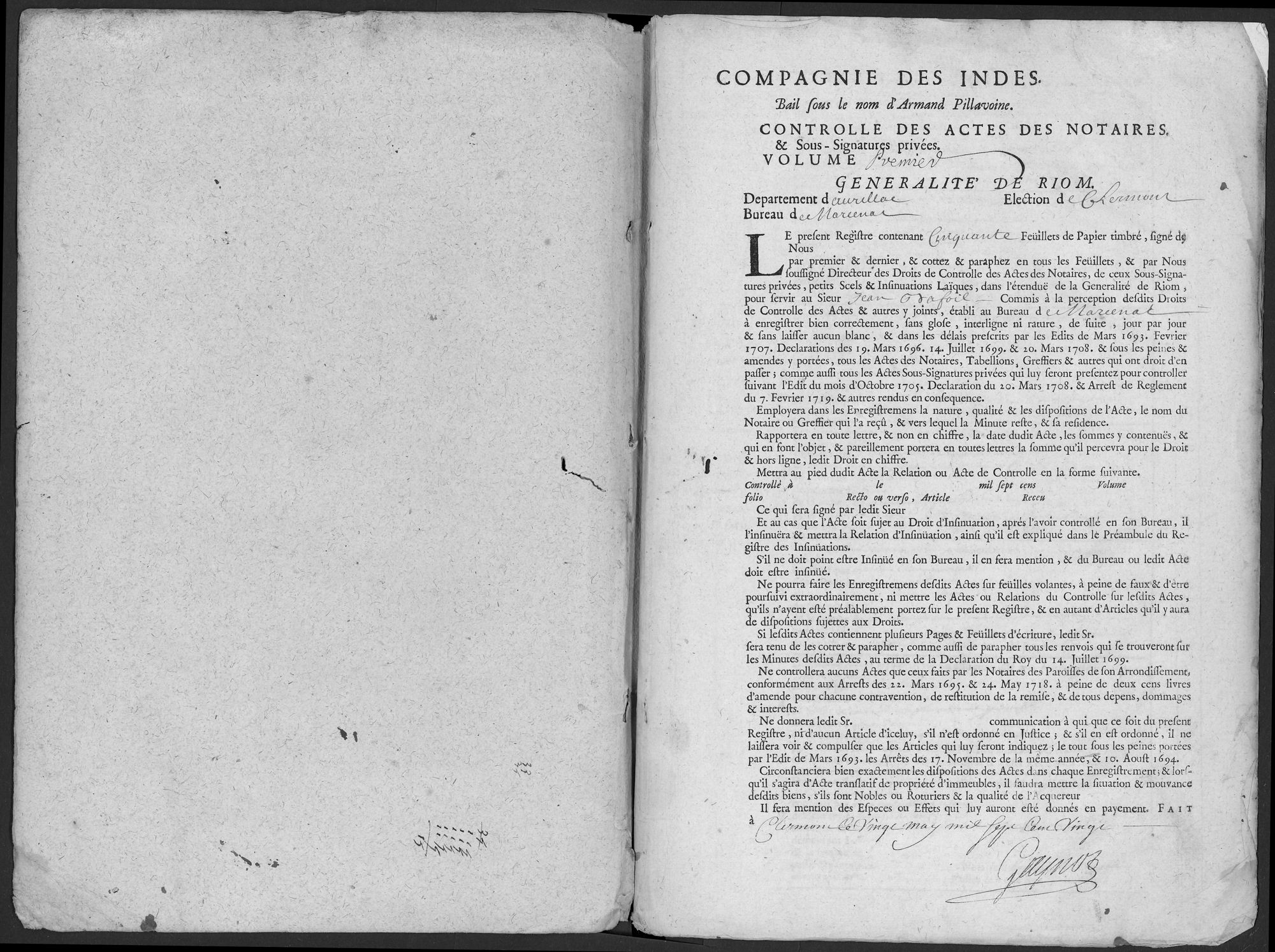 Série C - Contrôle des actes - 1676-1822 Bureau de Marcenat Contrôle des actes de notaires et sous seing privé (1702-1743) 1er juill. 1720 - 28 juin 1721 - 1720-1721 Cote 475 C 9 Date 1720-1721 Description physique Registre : Oui Permalien de la notice https://archives.cantal.fr:443/ark:16075/a0113546957186RfUWA.moteur=arko_default_5fe0d0b5a0d5e