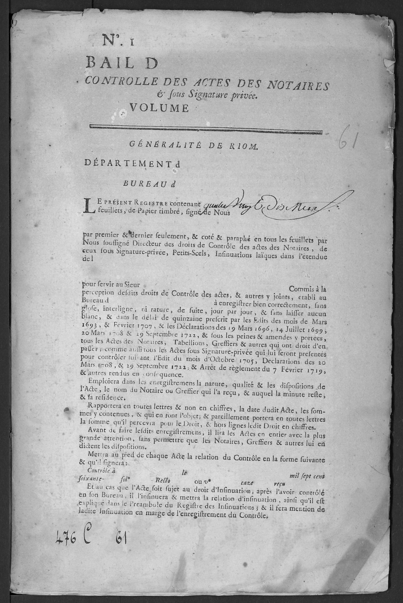 Série C - Contrôle des actes - 1676-1822 Bureau de Massiac Contrôle des actes de notaires et sous seing privé (1703-1791) 23 sept. 1779 - 19 avr. 1781 - 1779-1781 Cote 476 C 61 Date 1779-1781 Description physique Registre : Oui Permalien de la notice https://archives.cantal.fr:443/ark:16075/a011354695718h4EvDM.moteur=arko_default_5fe0d0b5a0d5e