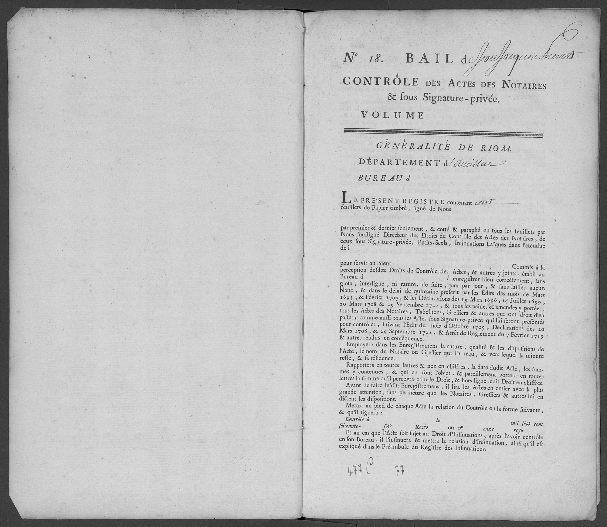 Série C - Contrôle des actes - 1676-1822 Bureau de Mauriac Contrôle des actes de notaires et sous seing privé (1693-1789) 18 mai 1768 - 24 mars 1769 - 1768-1769 Cote 477 C 77 Date 1768-1769 Description physique Registre : Oui Permalien de la notice https://archives.cantal.fr:443/ark:16075/a011354695718LEd8nR.moteur=arko_default_5fe0d0b5a0d5e