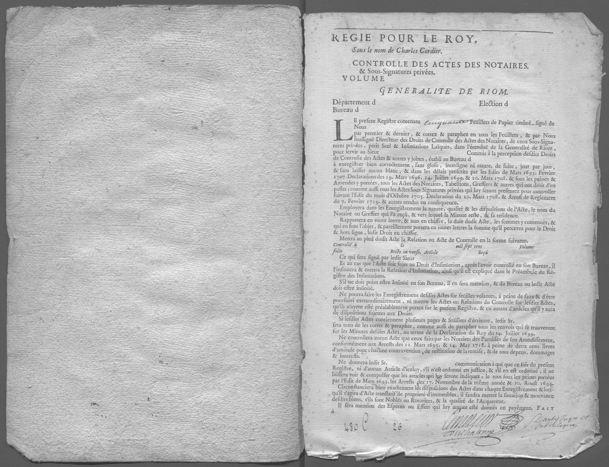 Série C - Contrôle des actes - 1676-1822 Bureau de Murat Contrôle des actes de notaires et sous seing privé (1699-1791) 4 fév. - 19 sept. 1724 - 1724 Cote 480 C 26 Date 1724 Description physique Registre : Oui Permalien de la notice https://archives.cantal.fr:443/ark:16075/a011354695718CEHATR.moteur=arko_default_5fe0d0b5a0d5e