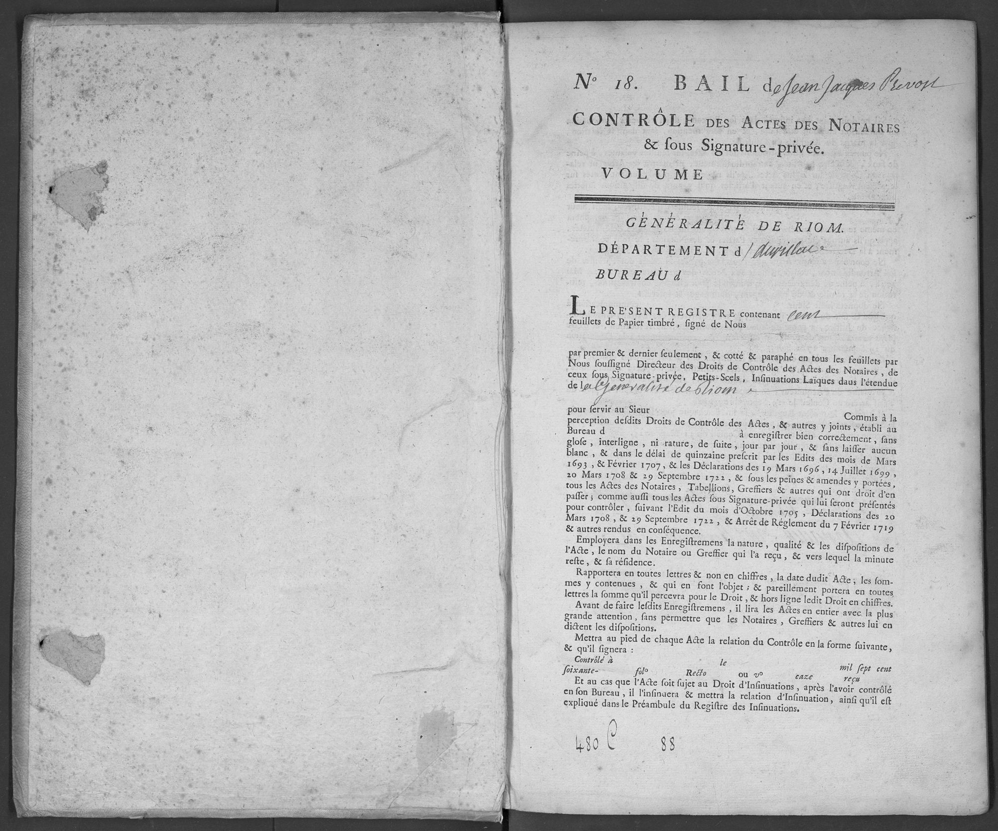 Série C - Contrôle des actes - 1676-1822 Bureau de Murat Contrôle des actes de notaires et sous seing privé (1699-1791) 1er juin 1764 - 23 avr. 1765 - 1764-1765 Cote 480 C 88 Date 1764-1765 Description physique Registre : Oui Permalien de la notice https://archives.cantal.fr:443/ark:16075/a011354695718E5006b.moteur=arko_default_5fe0d0b5a0d5e