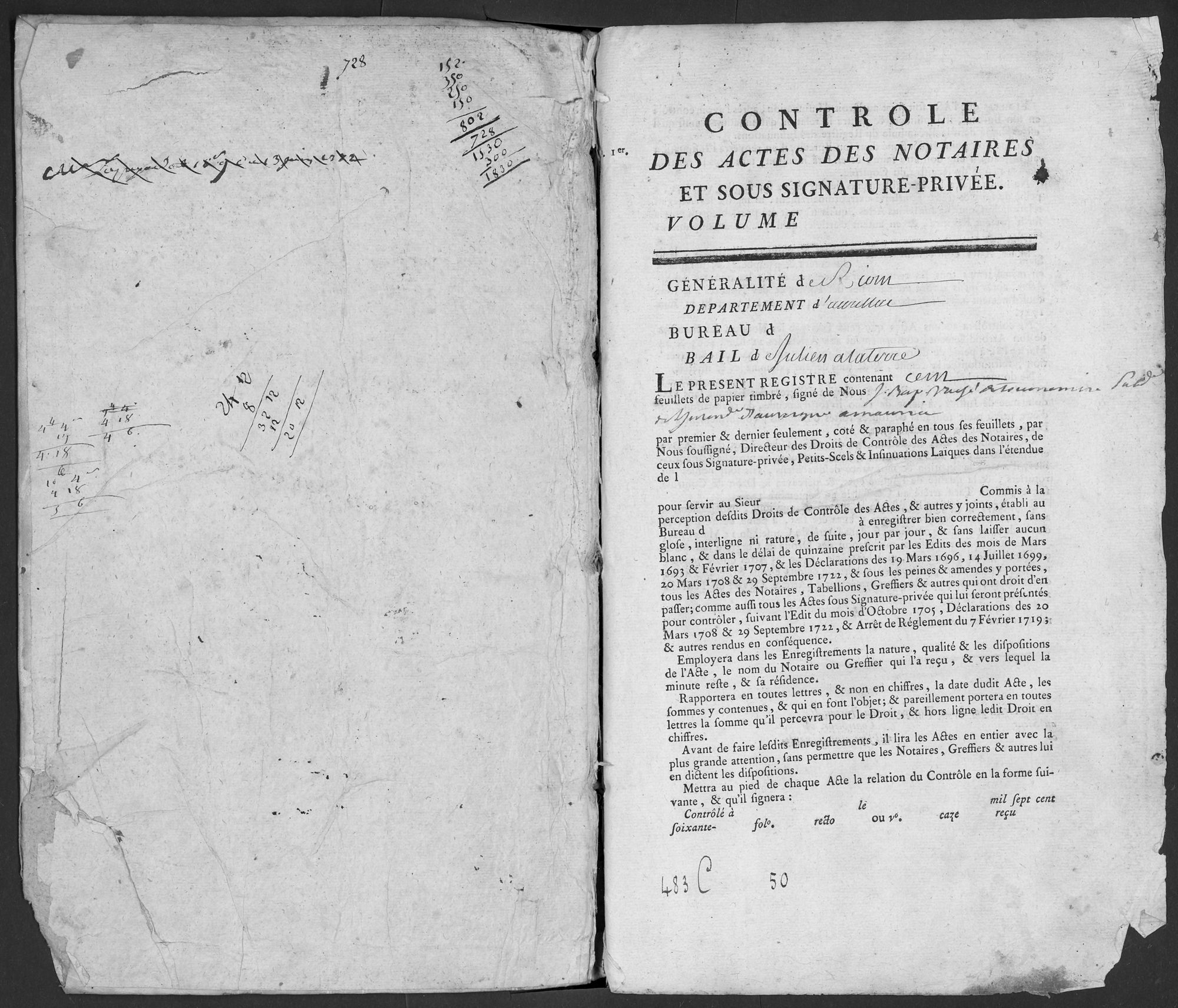 Série C - Contrôle des actes - 1676-1822 Bureau de Pleaux Contrôle des actes de notaires et sous seing privé (1697-1792) 10 oct. 1771 - 4 nov. 1772 - 1771-1772 Cote 483 C 50 Date 1771-1772 Description physique Registre : Oui Permalien de la notice https://archives.cantal.fr:443/ark:16075/a011354695718Gwjvhg.moteur=arko_default_5fe0d0b5a0d5e