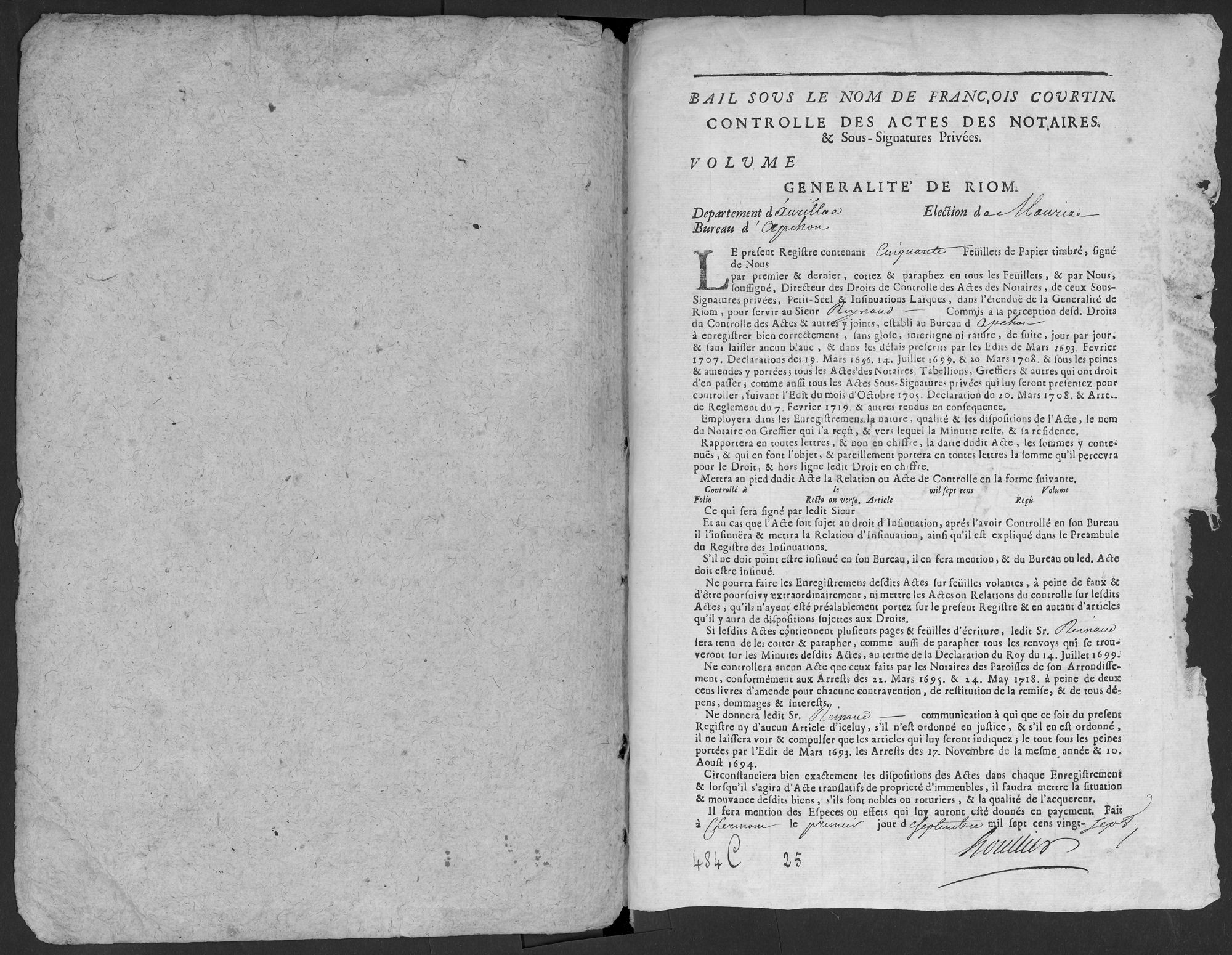 Série C - Contrôle des actes - 1676-1822 Bureau d'Apchon et de Riom-ès-Montagnes Contrôle des actes de notaires et sous seing privé (1693-1789) 1er oct. 1727 - 24 mai 1728 - 1727-1728 Cote 484 C 25 Date 1727-1728 Description physique Registre : Oui Permalien de la notice https://archives.cantal.fr:443/ark:16075/a011354695718LecZUe.moteur=arko_default_5fe0d0b5a0d5e
