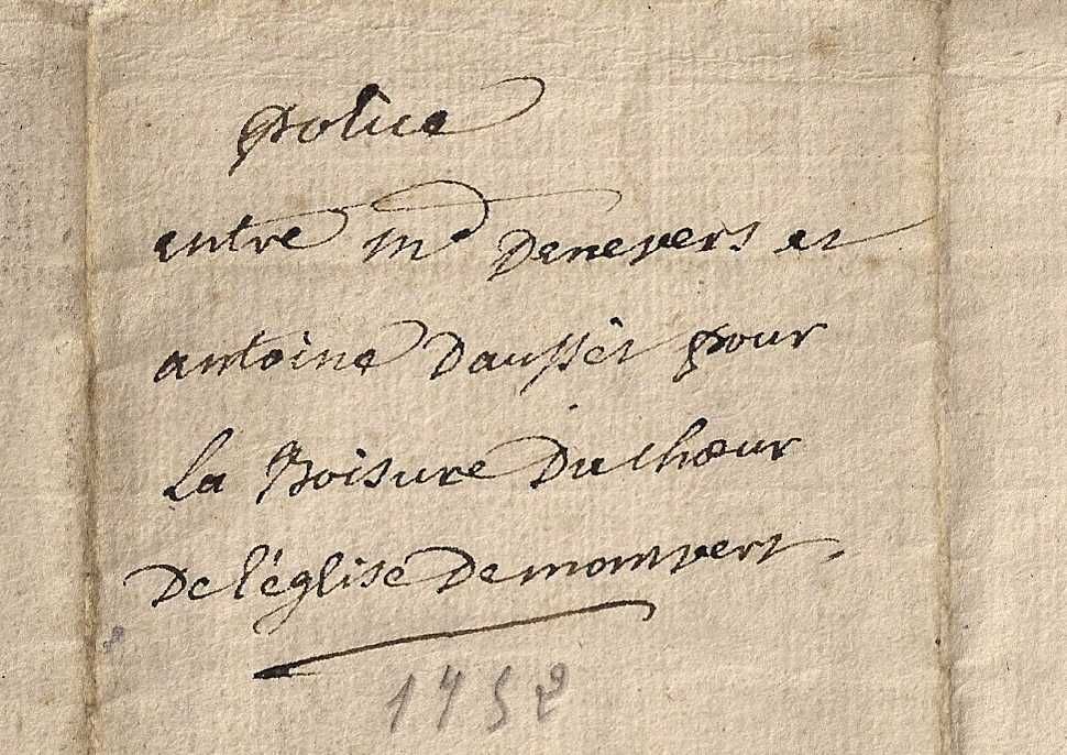 71 NUM 1-15 - Archives de la fabrique de Montvert - 1702-1925 71 NUM 7 - Boiseries du chœur : prix-fait entre Annet de Nevers, chapelain de la Trémolière et ancien curé de Montvert, et Antoine Dausset, menuisier de Laroquebrou. - 5 juin 1752 Cote 71 NUM 7 Date 5 juin 1752 Mots-clés lieu Laroquebrou (Cantal, France) Montvert (Cantal, France) Mots-clés matière Prix-fait Eglise Boiseries Menuisier Fabrique Curé Mots-clés personne Nevers, Annet de Dausset, Antoine Permalien de la notice https://archives.cantal.fr:443/ark:16075/a011544100865Byl2Rl.moteur=arko_default_5fe0d0b5a0d5e