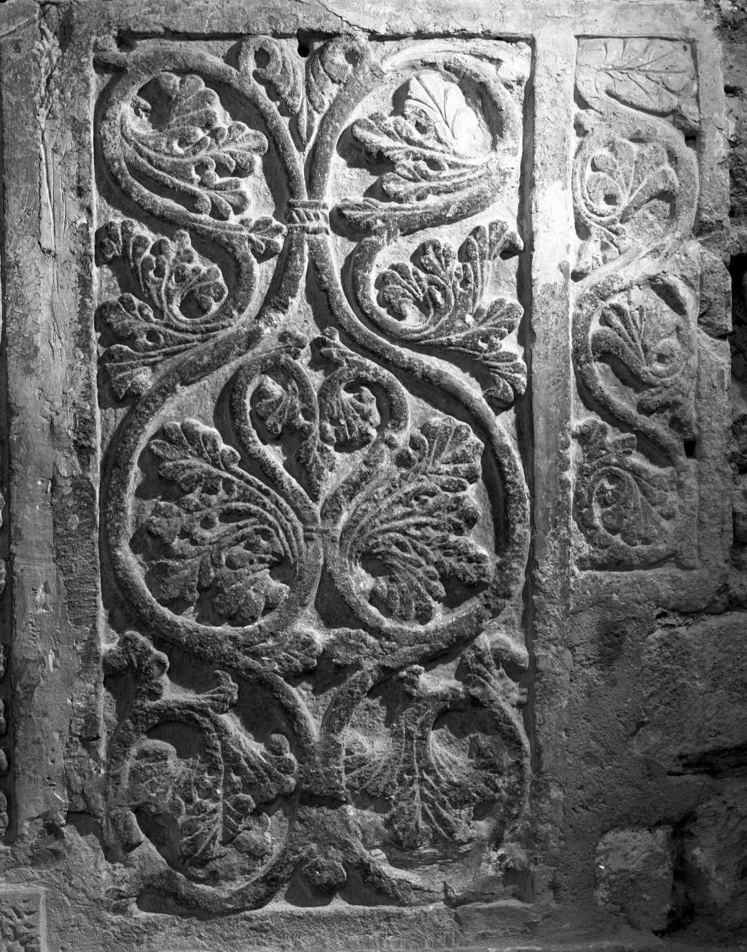 Historique : Découvertes sous le dallage de la chapelle Saint-Géraud. Ce serait, d'après une tradition populaire, l'ancien revêtement du tombeau du comte d'Aurillac. Il faut y voir plutôt deux plaques décoratives destinées à orner la paroi d'un mur.