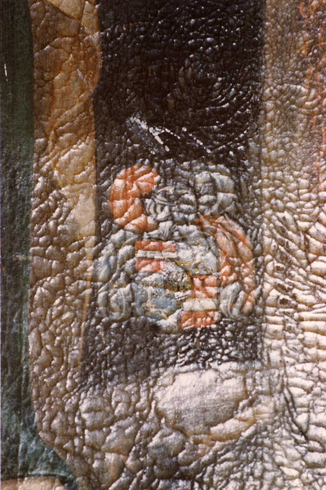 - La Crucifixion avec saint Barthélémy et saint Laurent (peinture) -- Notre-Dame-de-l'Assomption, église (Jou-sous-Monjou, Cantal, France) -- 1945-1990