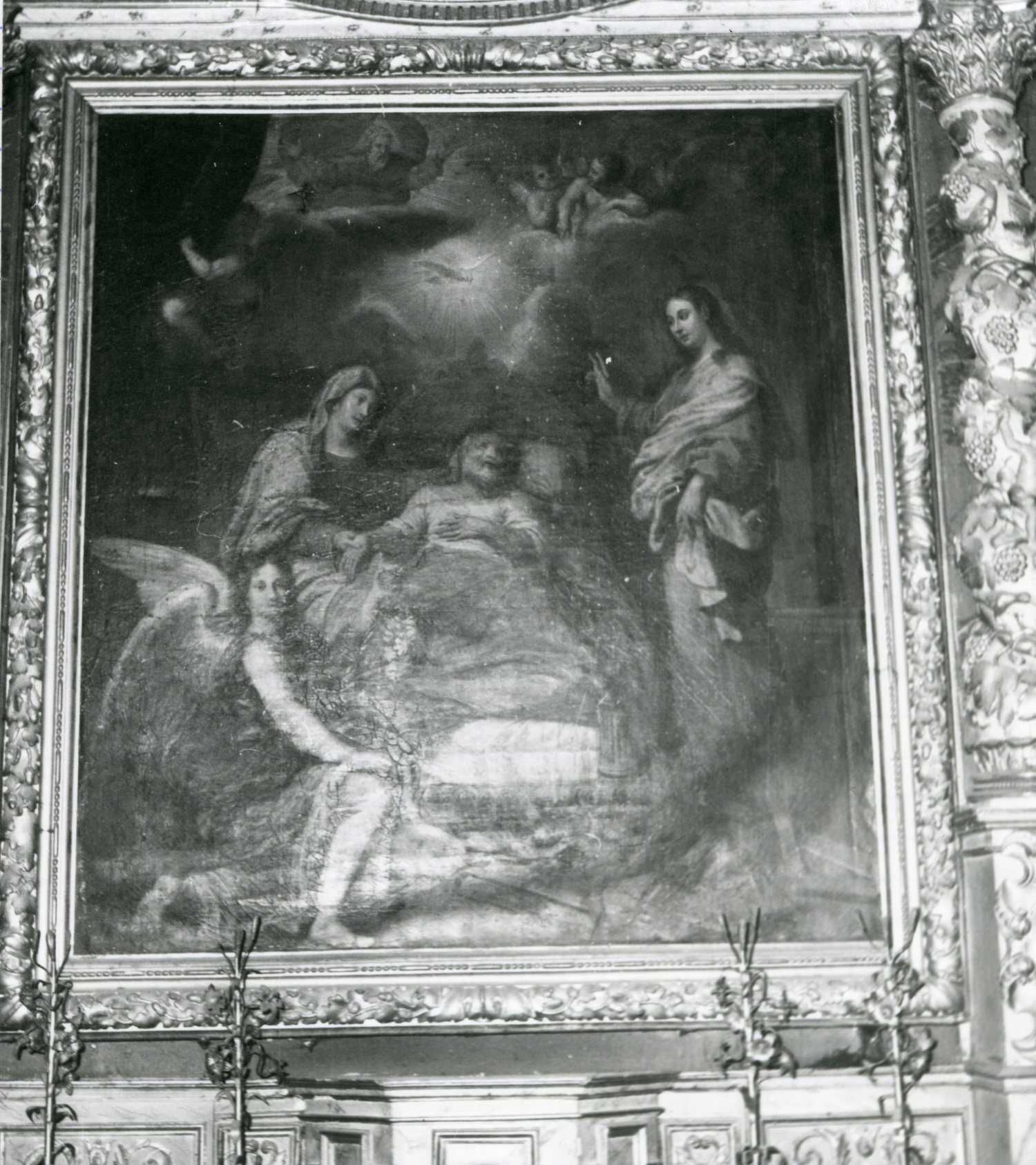 Matériaux : bois : doré ; toile (support) : peinture à l'huile