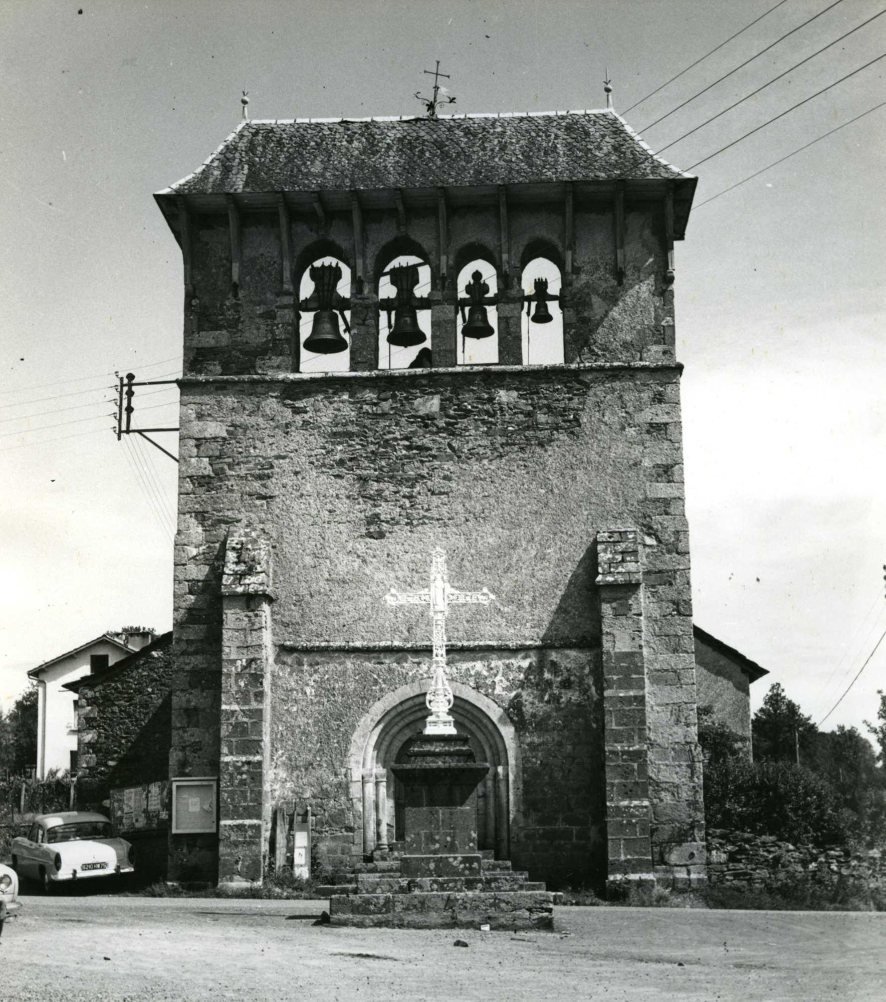 - Clocher -- Sainte-Barbe, église (Roannes-Saint-Mary, Cantal, France) -- 1945-1990