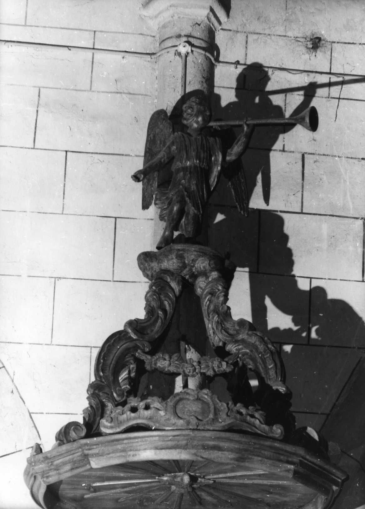 Description : Elle comporte une cuve sur culot, un dorsal et un abat-voix. L'escalier d'accès à panneaux est d'époque.