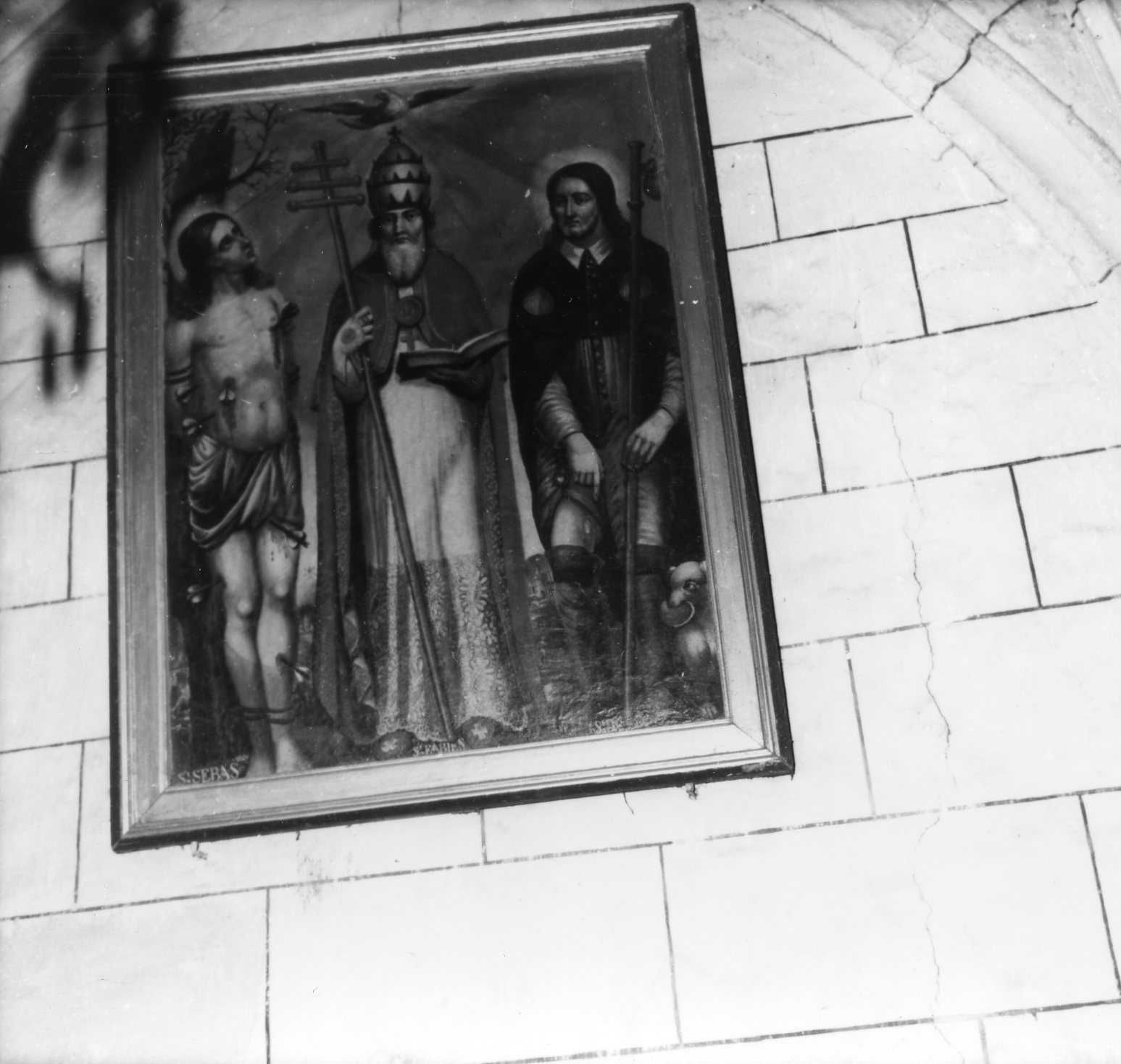 • Saint Sébastien, saint Fabien et saint Roch (peinture) -- Saint-Mathieu, église (Salers, Cantal, France) -- 1945-1990