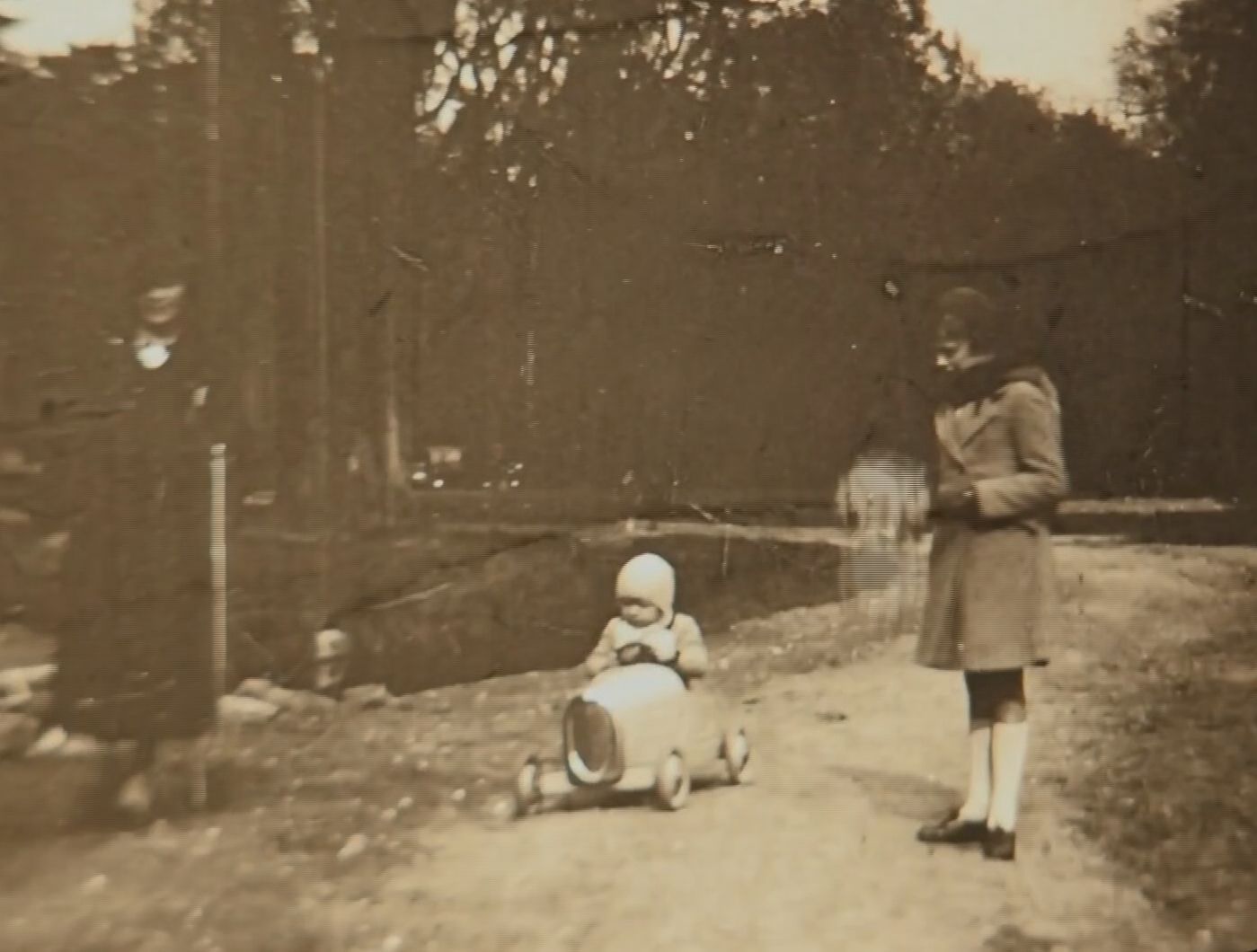 Madeleine Frégeac et Pierre Frégeac jouent au ballon, puis Jean Frégeac, puis Pierre Frégeac et sa voiture à pédales, puis l'avion, Pierre Frégeac remonte l'hélice.
