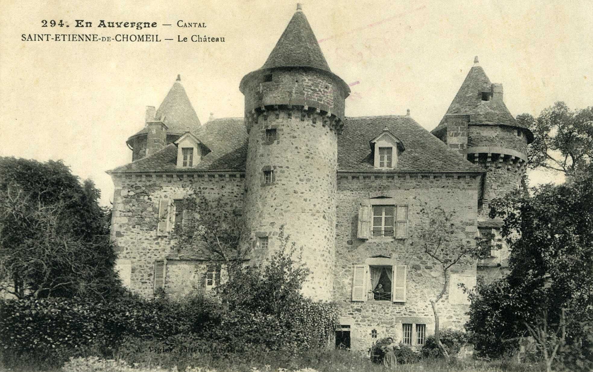 - Cartes postales : "Le Cantal illustré - St-Etienne-de-Chomeil - Vue générale" (côté sud) ; "294. En Auvergne - Cantal - Saint-Etienne-de-Chomeil - Le château" (façade sud, 2 exemplaires) ; "Le Cantal illustré - St-Etienne-de-Chomeil - Le château" (façade nord).