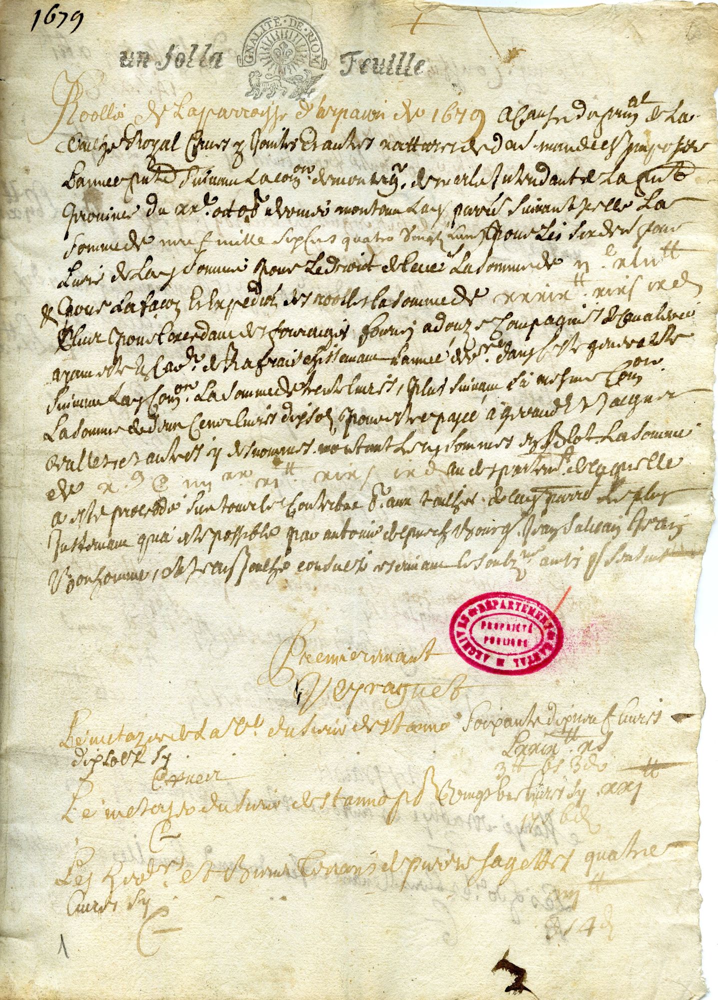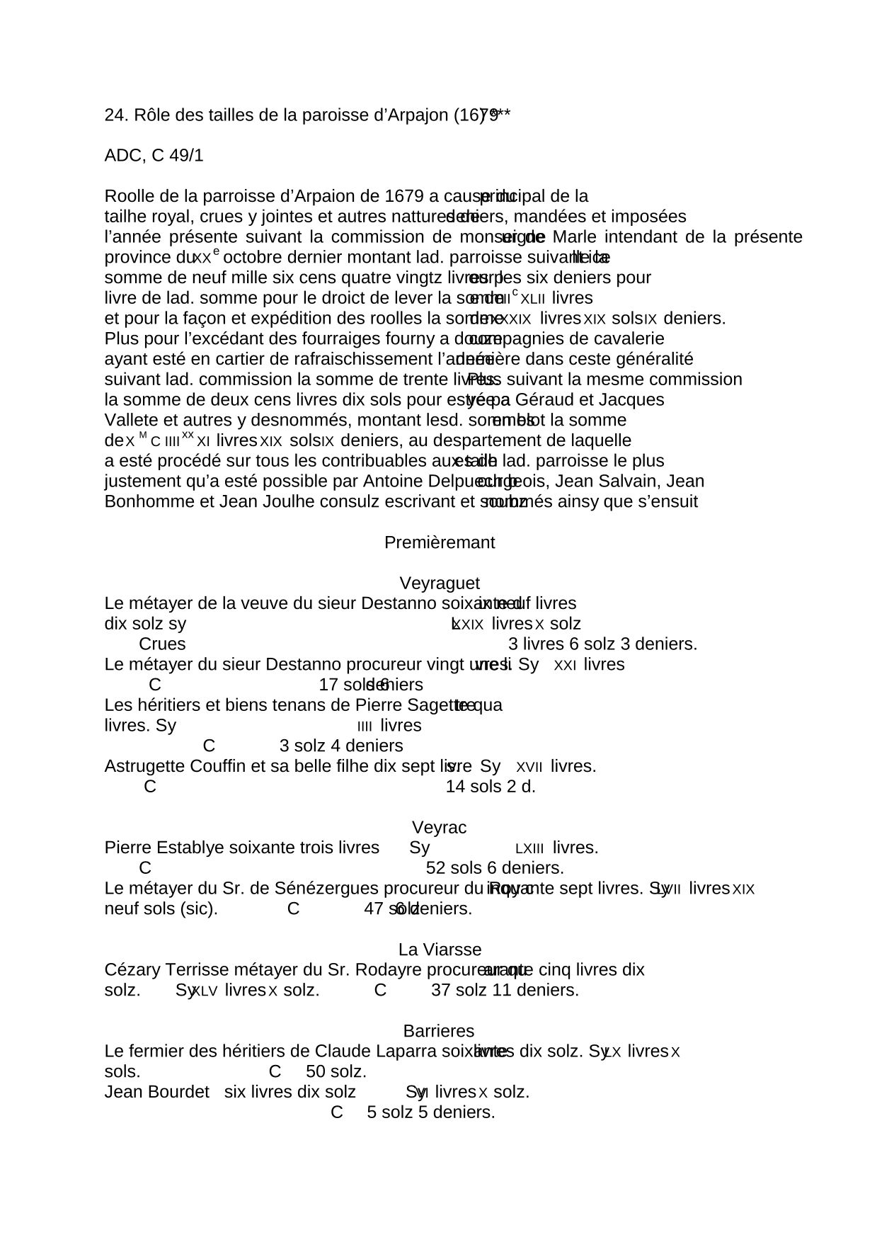 Rôle des tailles de la paroisse d'Arpajon (1679)