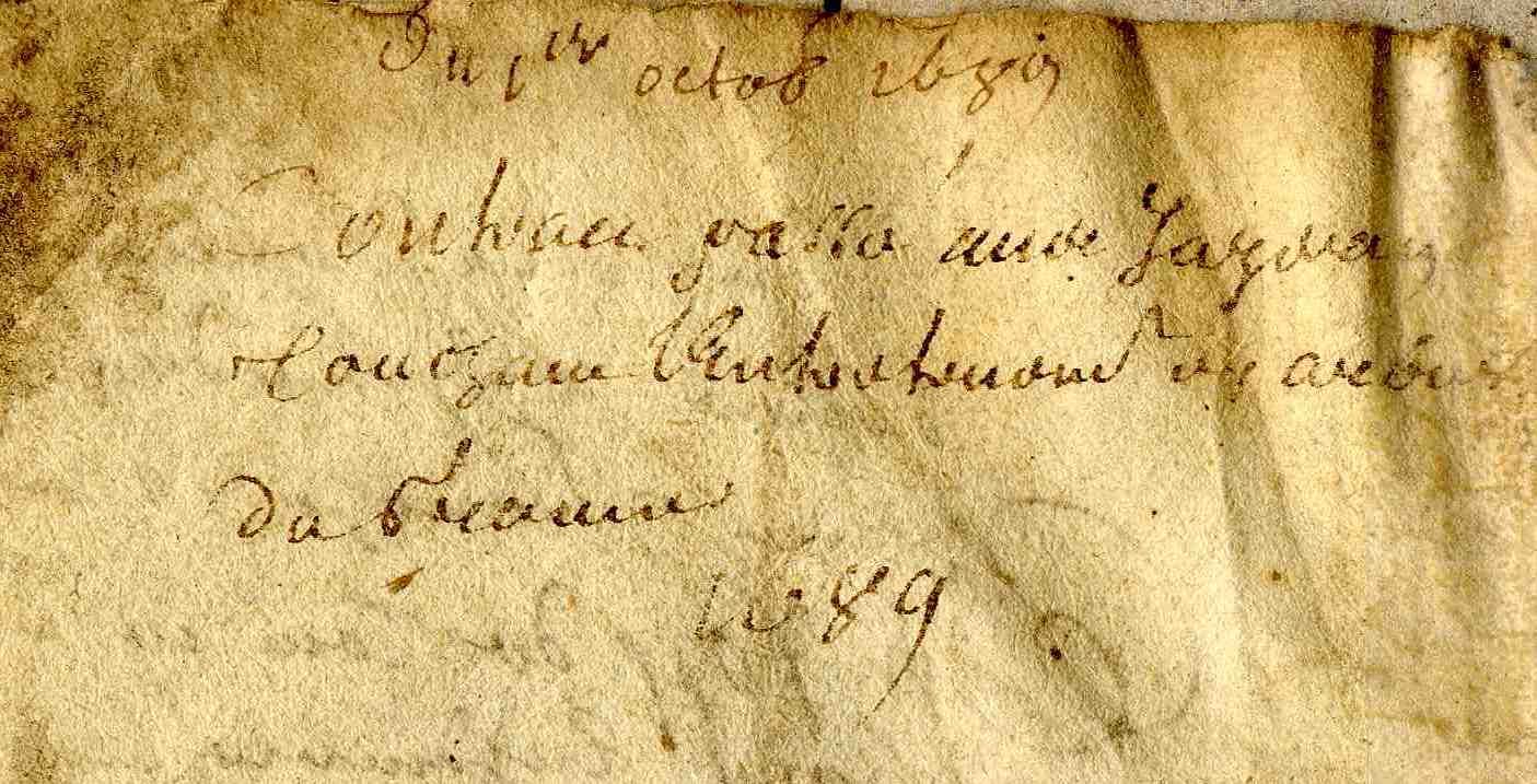 Obligation (= reconnaissance de dettes) portant département (= rupture du bail) reconnue par Antoine Pebrel, laboureur d'Espinassoles (Anglards-de-Salers) envers Jean Romial marchand de Mauriac (1697)
