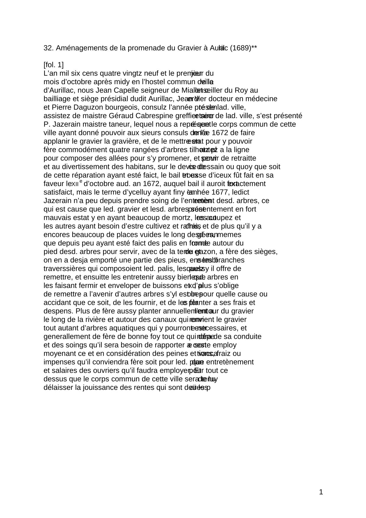 Aménagements de la promenade du Gravier à Aurillac (1689)