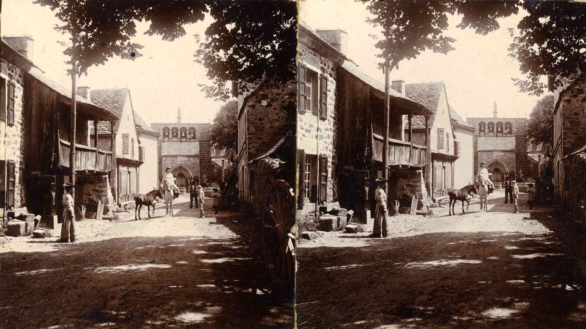 On présente ici des reproductions (pour protéger les originaux des atteintes de la lumière) de photographies stéréoscopiques conservées dans une collection privée cantalienne ; leur visionnage en relief se fait grâce à un stéréoscope prêté par M. François Champreux.