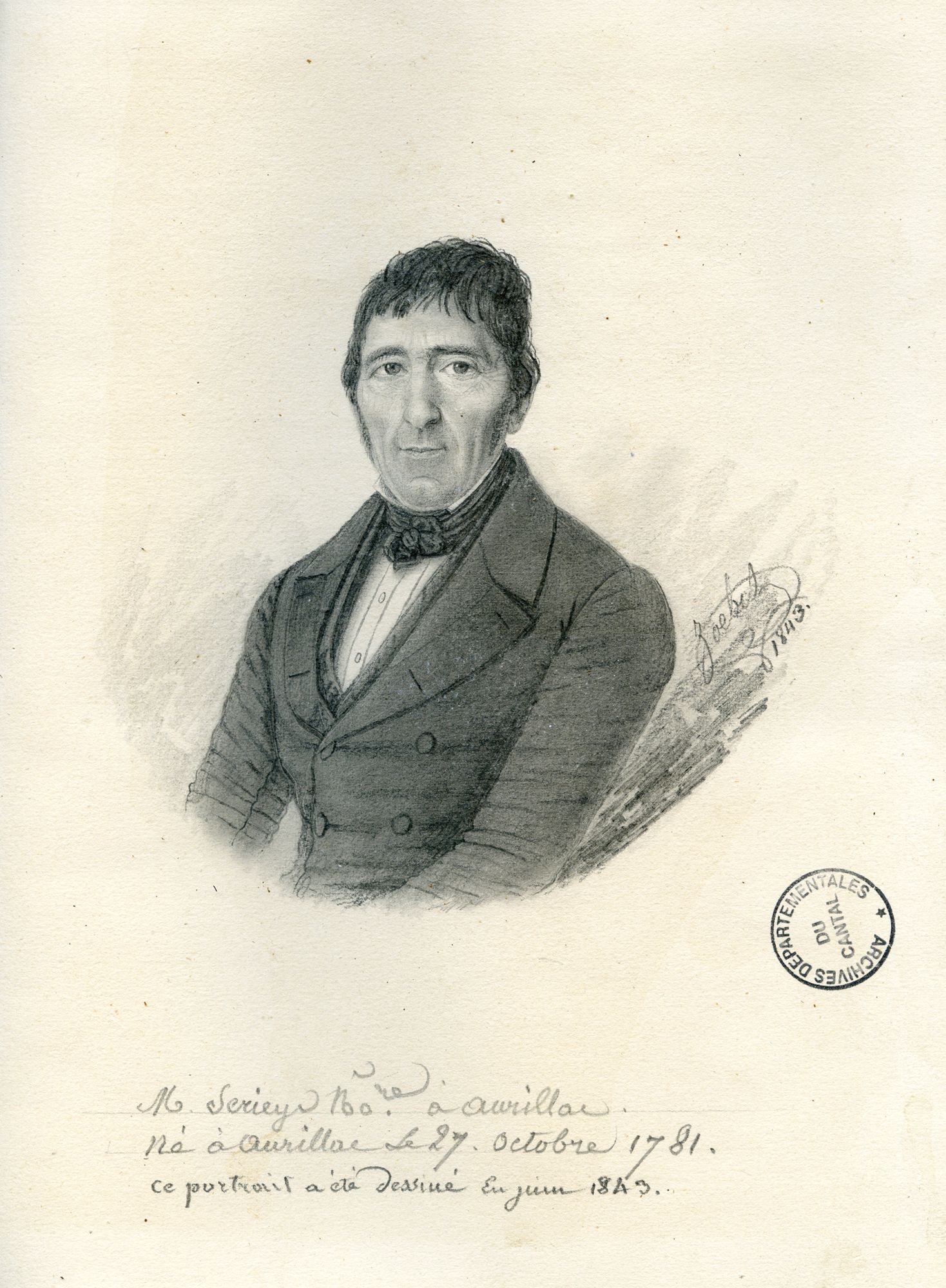 La correspondance de Joseph, Jude, Simon Serieys (J.J.S.S., 1781-1860), notaire à Aurillac et descendant d’une longue lignée de notaires, a été récemment donnée aux Archives départementales par M. Antoine Roquette, qui en a publié une édition partielle. Elle consiste principalement en dix volumes des minutes de lettres envoyées, entre 1811 et 1860. Collectionneur d’art (il fit d’ailleurs de sa collection au musée d’Aurillac), représentant de la bourgeoisie libérale rousseauiste, libérale mais imbue de progrès, Serieys est un observateur avisé de la société de son temps.